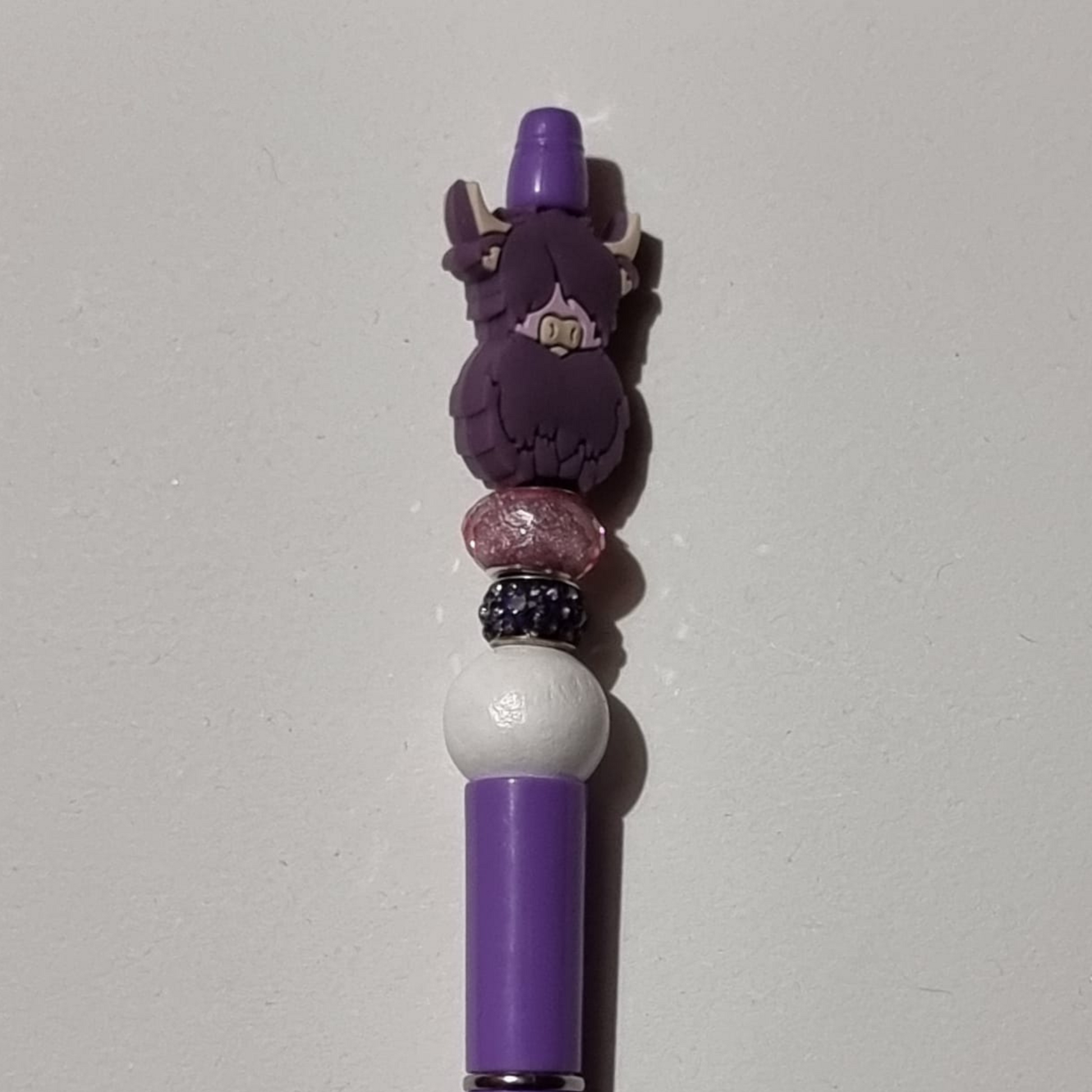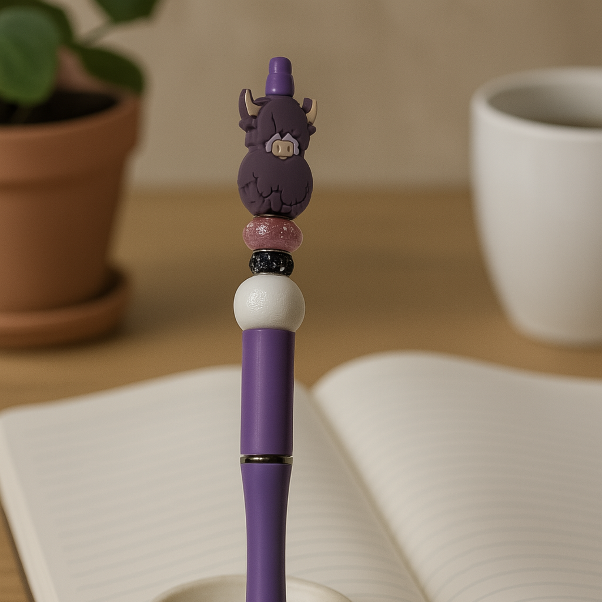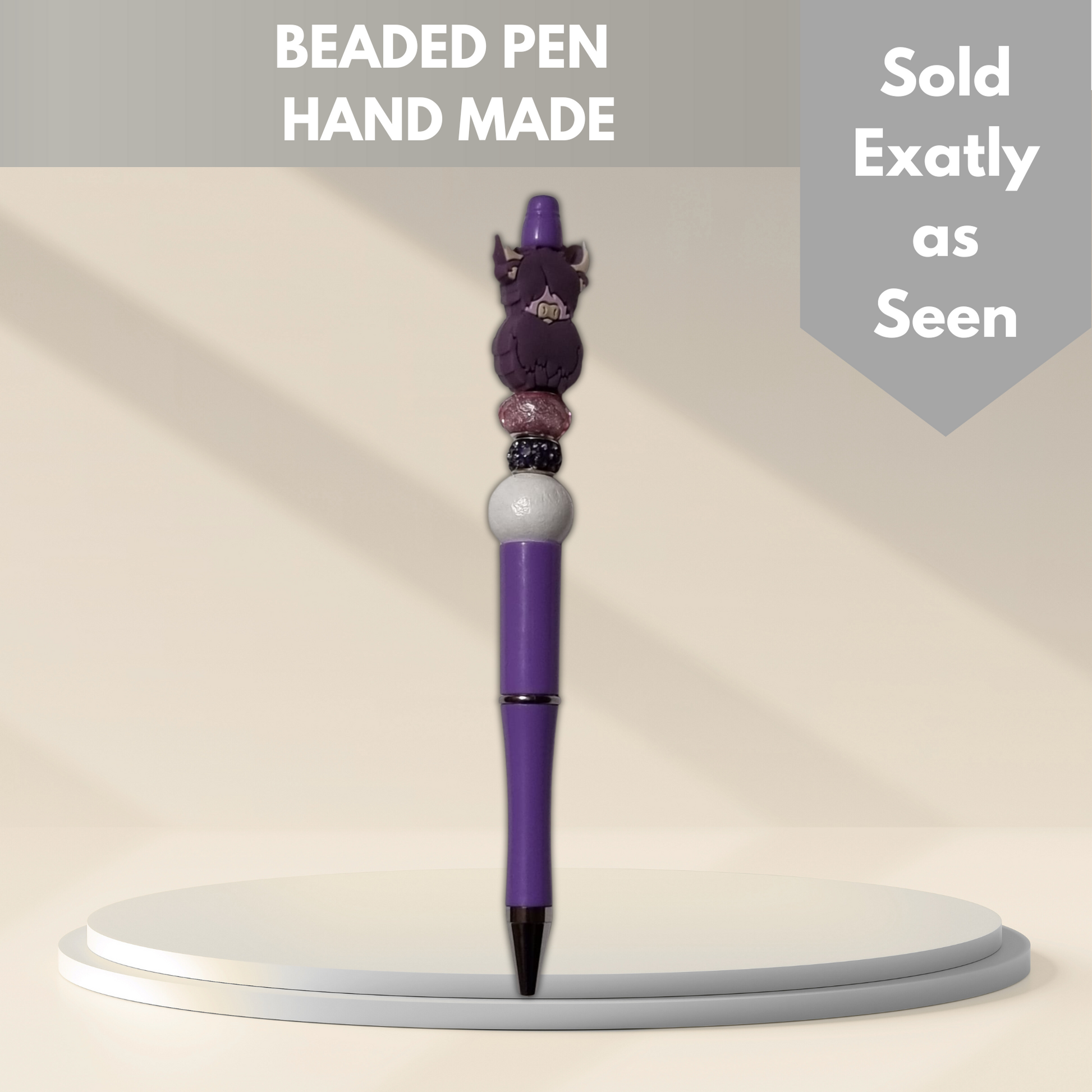 Highland Cow Beaded Pen - Handmade beaded pen black ink, Cute stationery pen