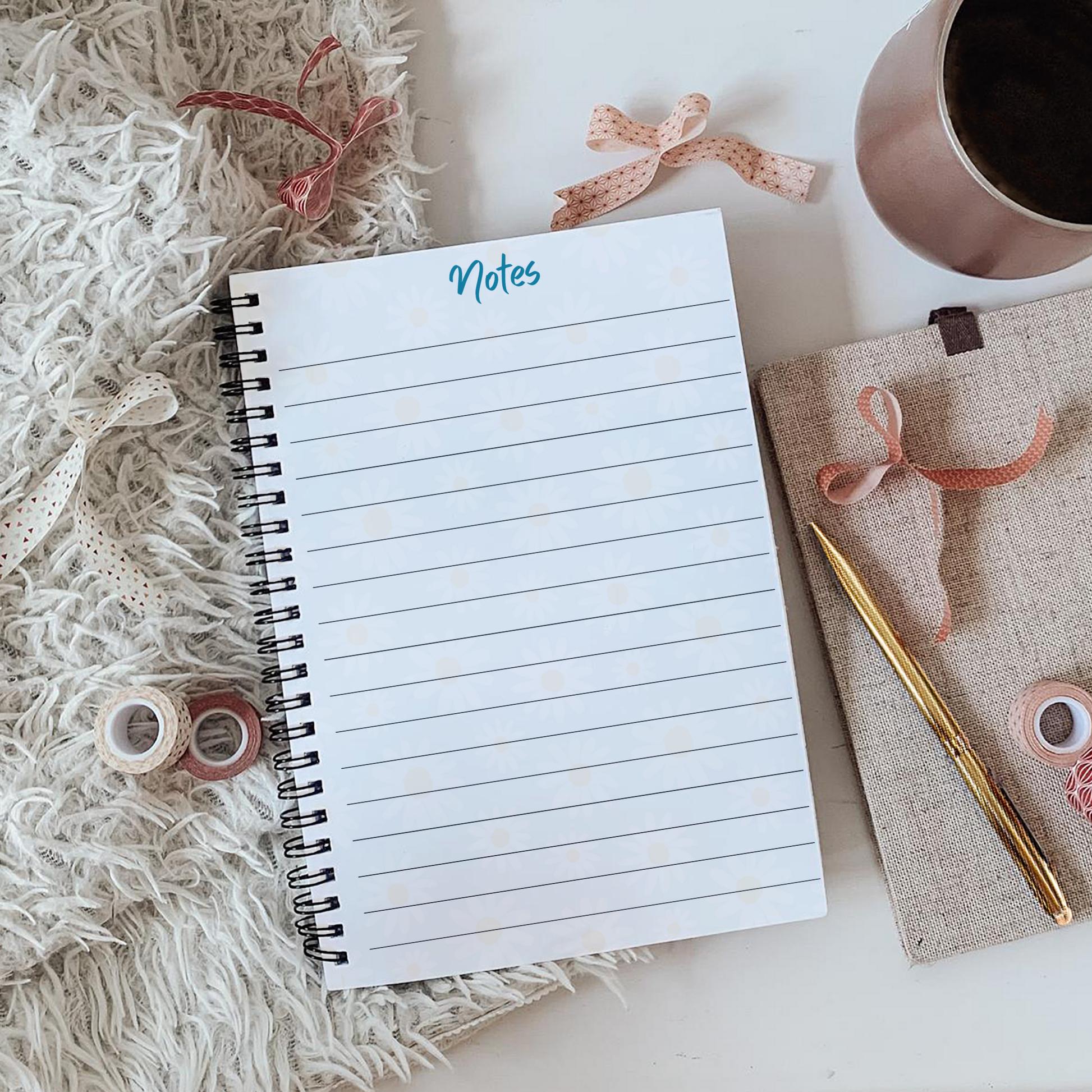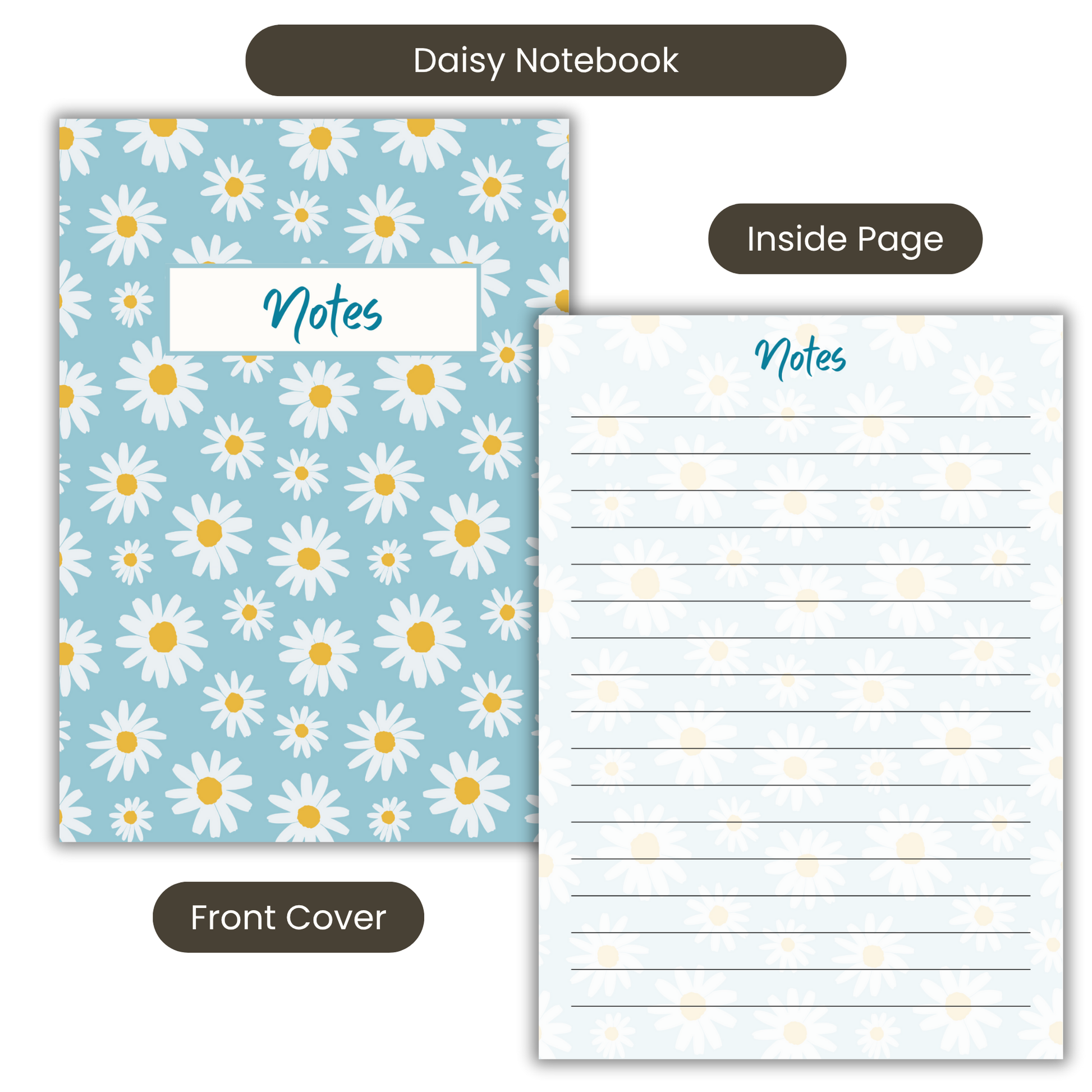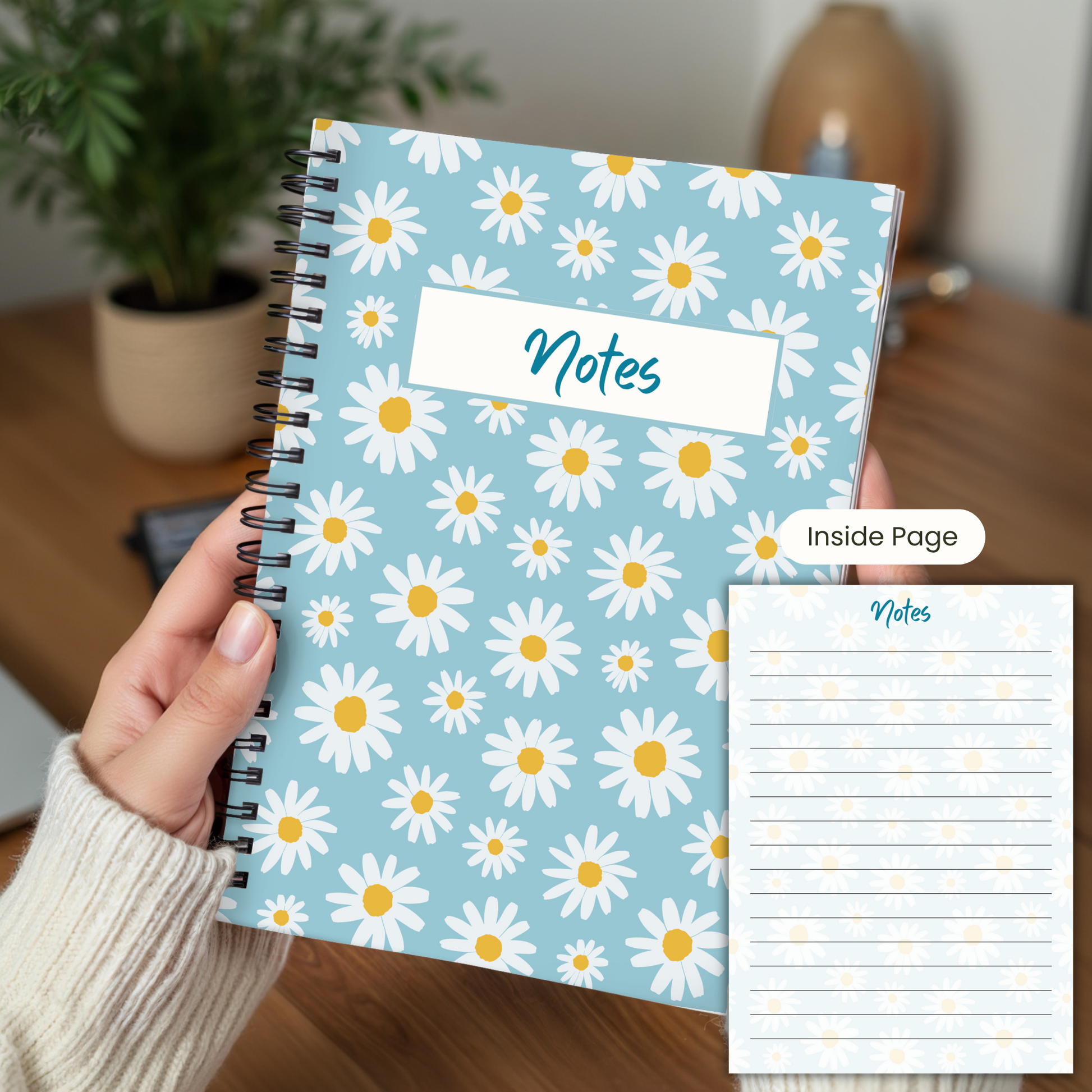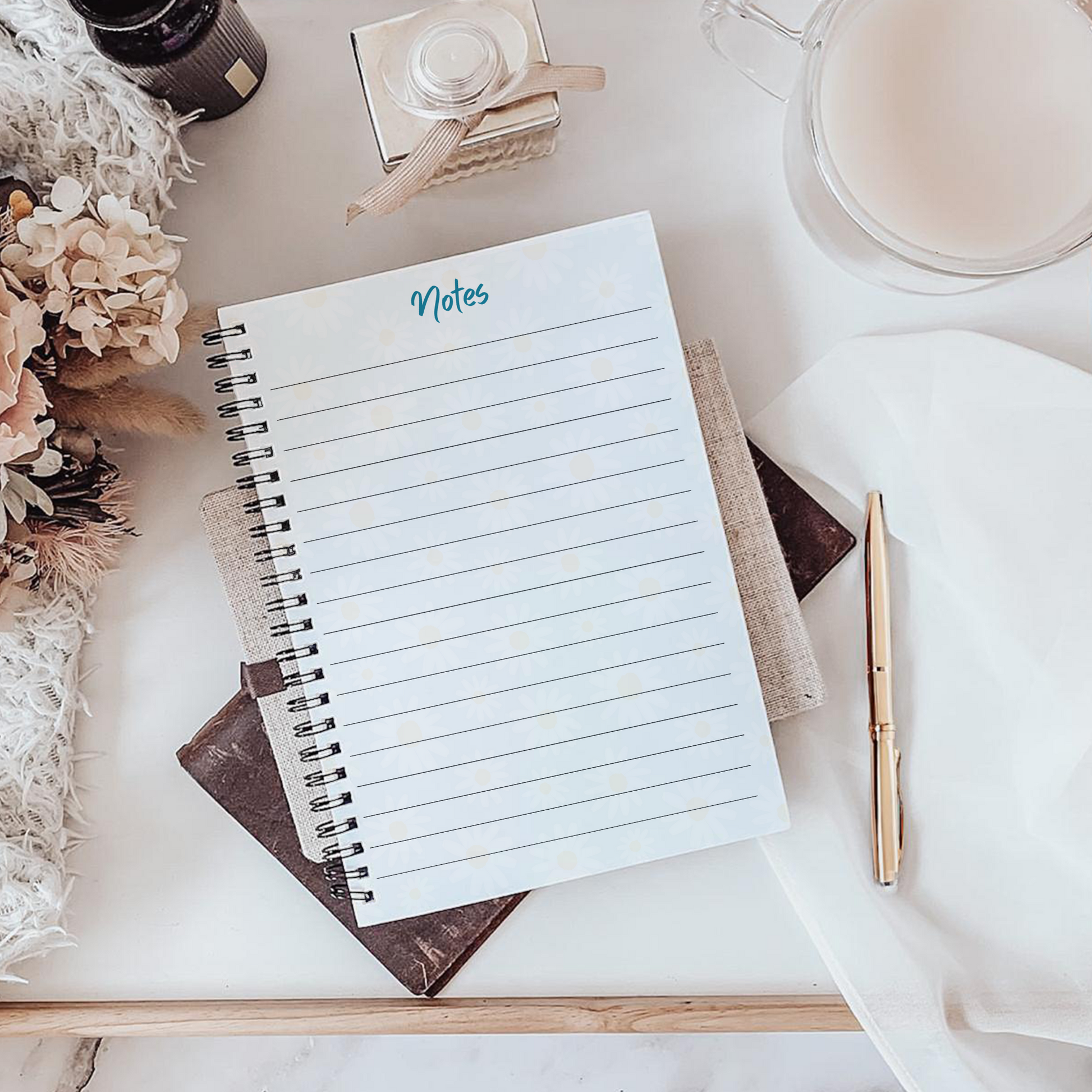 Stay organised with our Blue daisy Print Notebook, featuring lined paper with a beautiful pattern on each page.