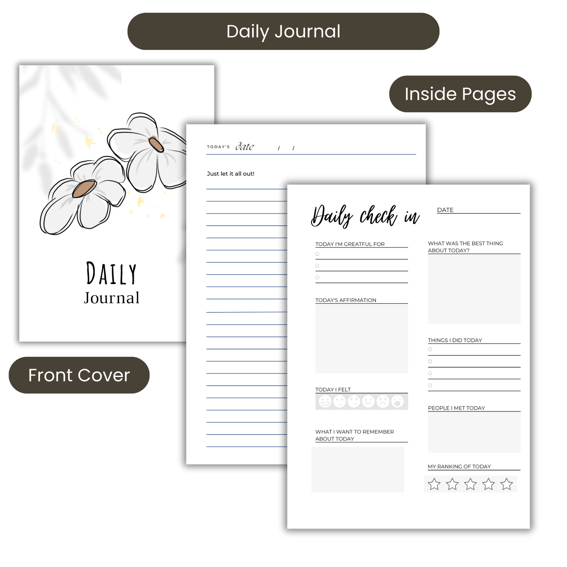 With a simple floral cover design and practical layout, it’s the perfect addition to your self-care routine, helping you check in with yourself daily and stay on top of what matters most.