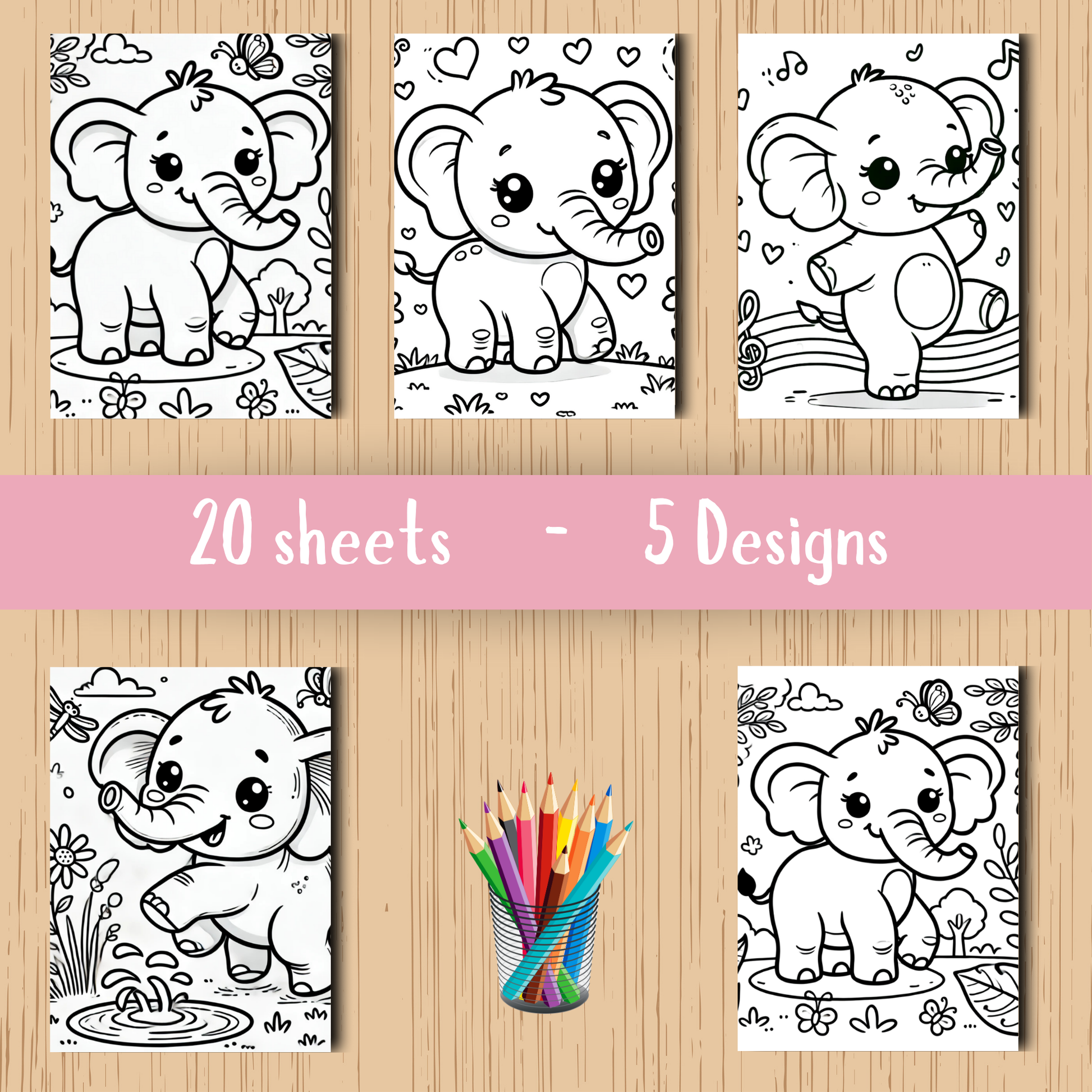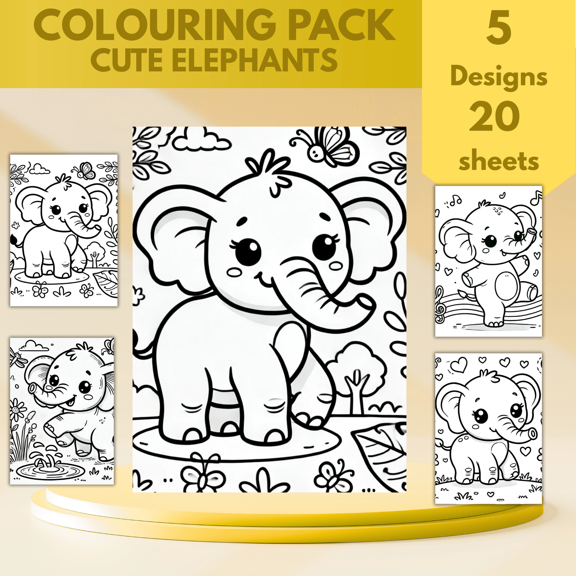 Pack Details: 5 unique elephant-themed designs, with 4 copies of each – 20 high-quality A4 sheets in total