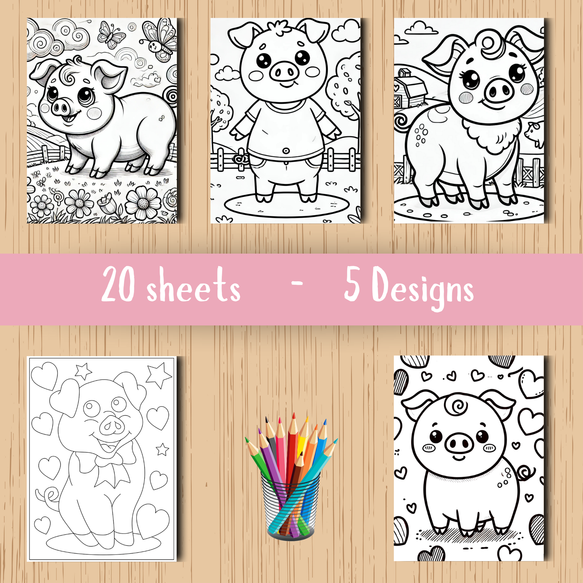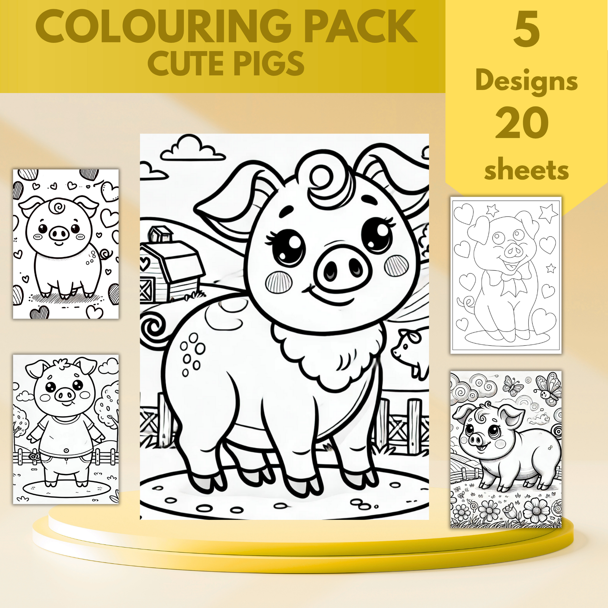 Pack Details: 5 unique pig-themed designs, with 4 copies of each, making a total of 20 high-quality A4 sheets