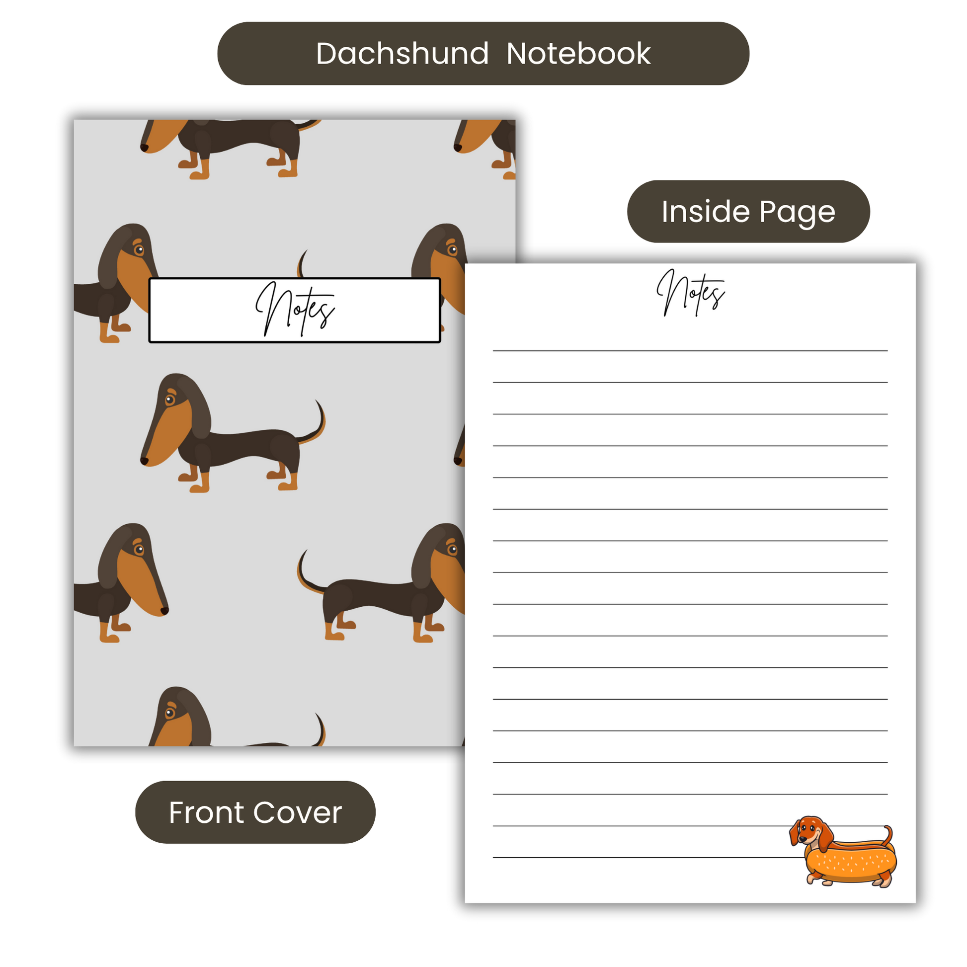 Dachshund Cute Notebook A5 or A4, dog mum gift, Cute notebooks for students and work