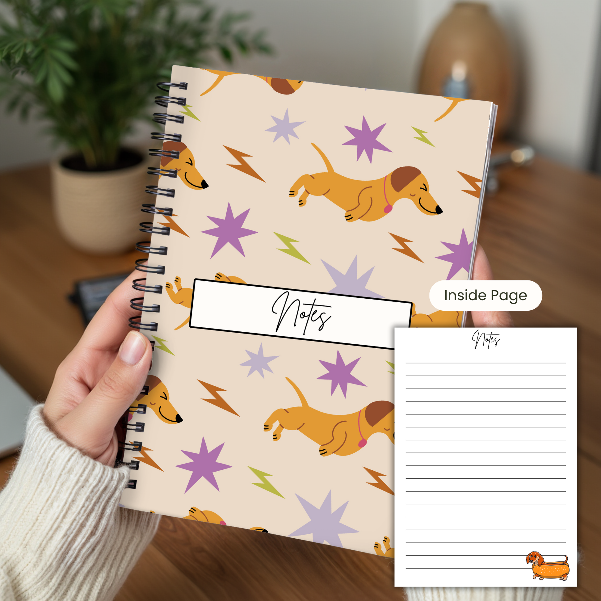 Stay organised with our Dachshund Print Notebook, featuring lined paper and a cute Dachshund on each page.