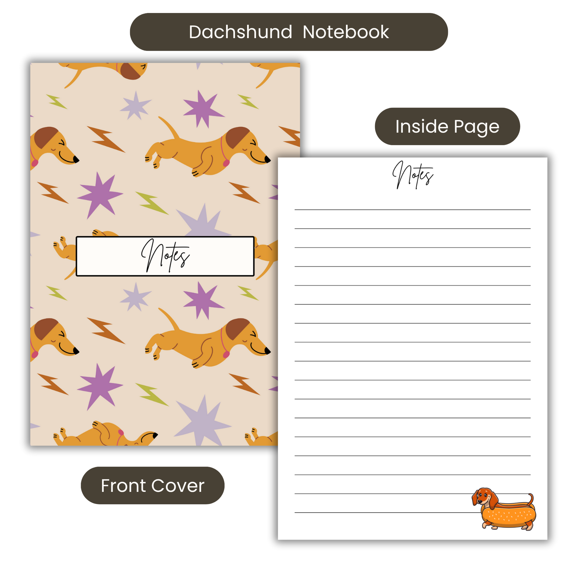 Dachshund Notebook A5 or A4 dog mum gift, Cute notebooks for students and work