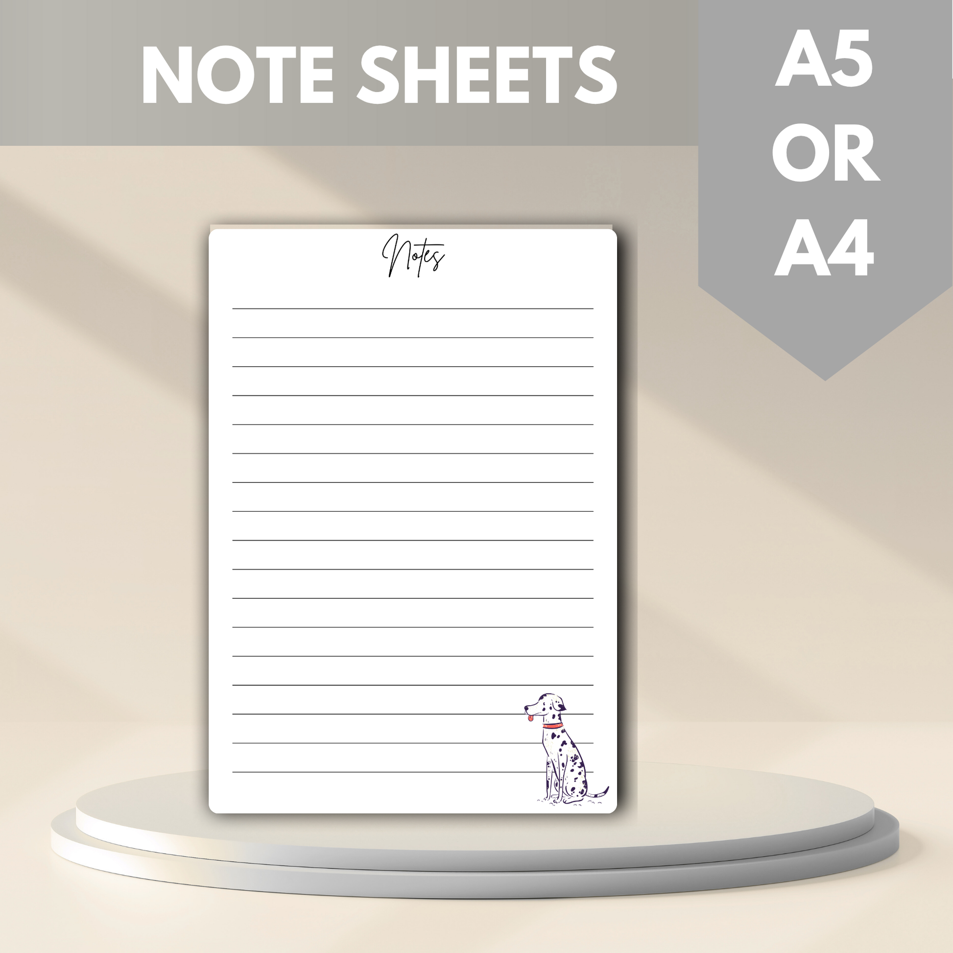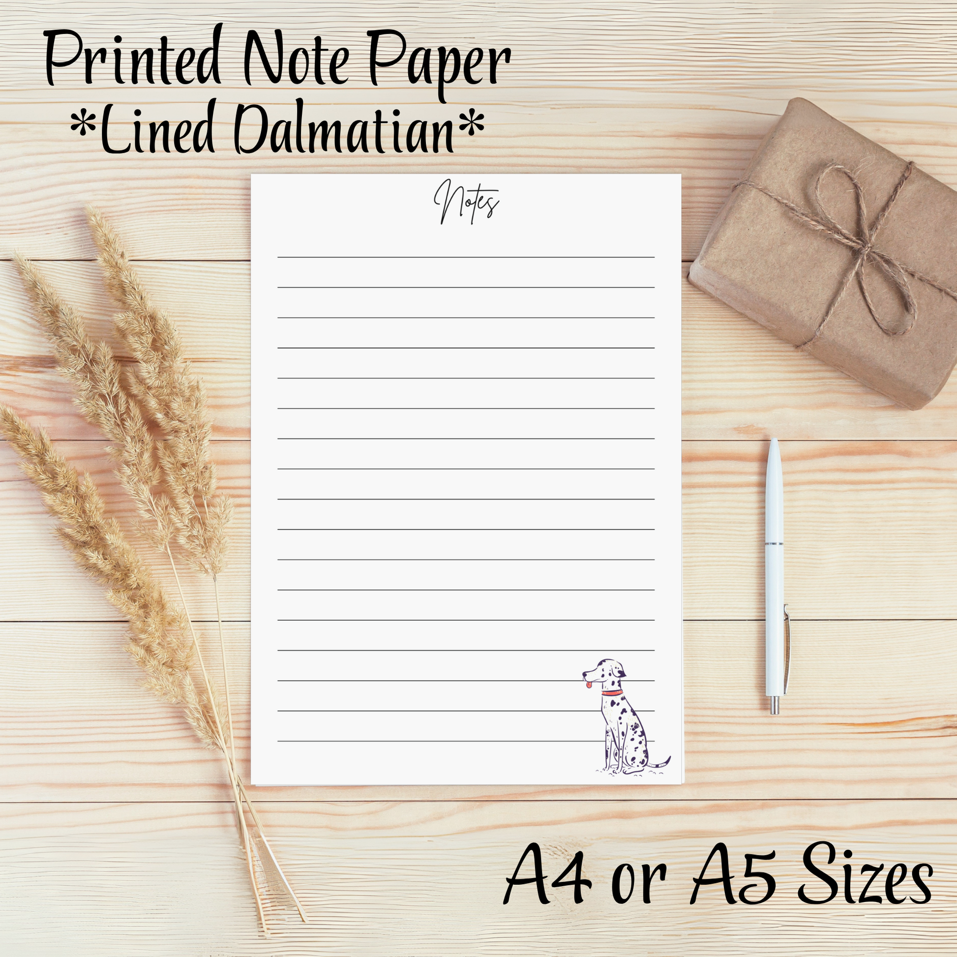 Dalmatian Lined Printed Note Paper - A4 or A5 sizes, Work Study or Class stationery, Lined paper inserts