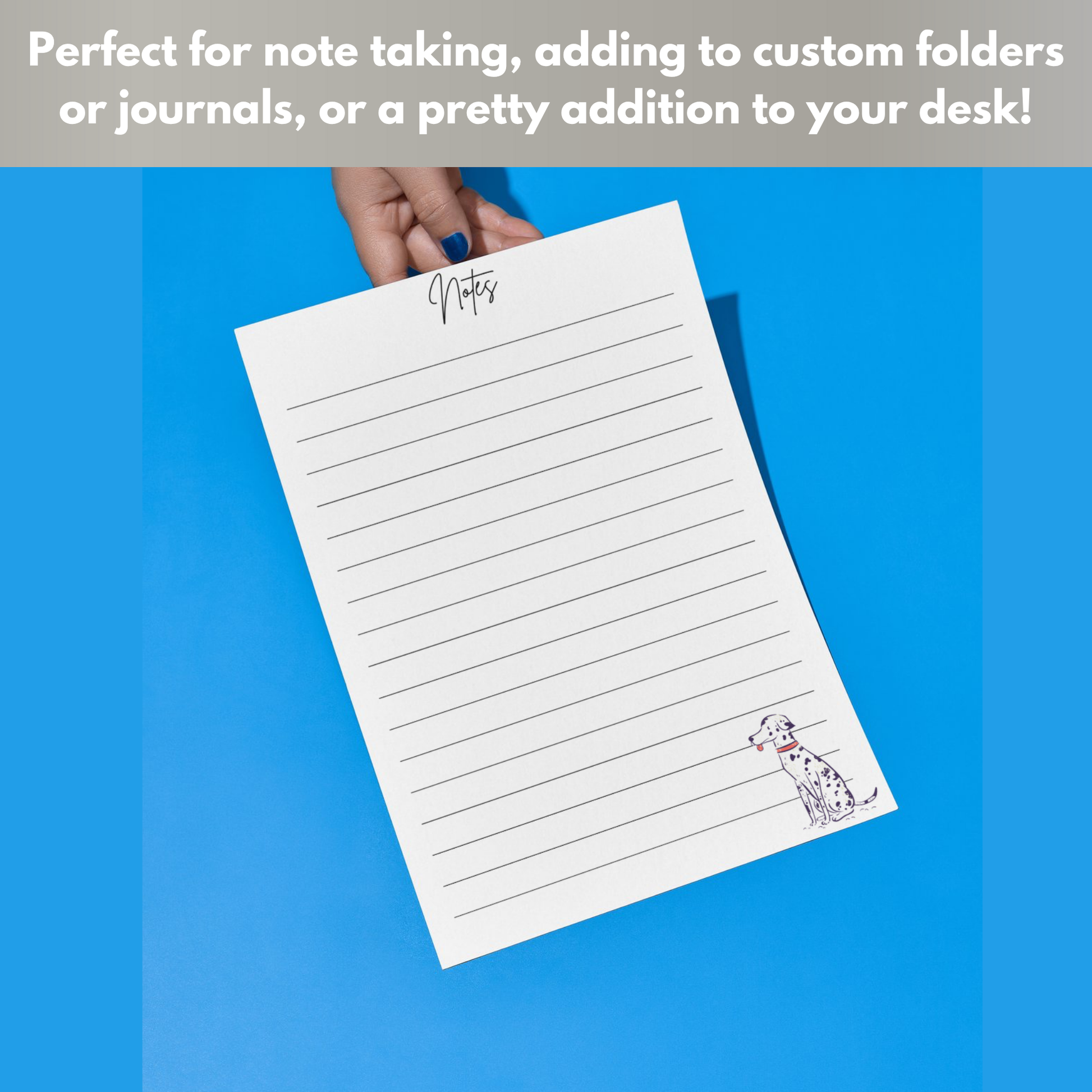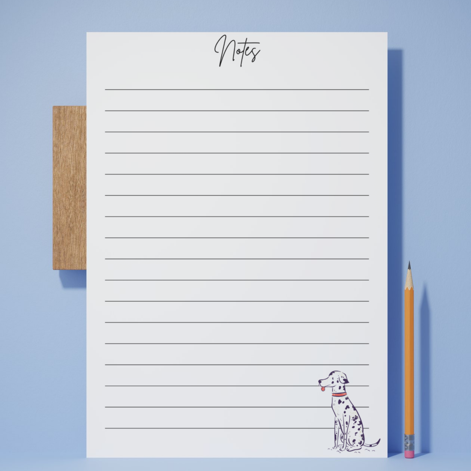 Bring some dog-loving charm to your writing with this lined Dalmatian-themed note paper! Whether you're penning a letter, leaving a sweet note, or journaling your thoughts, this design adds personality to every page.