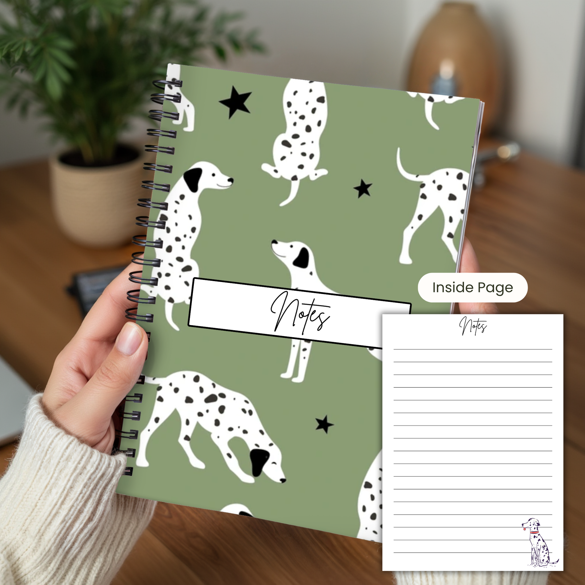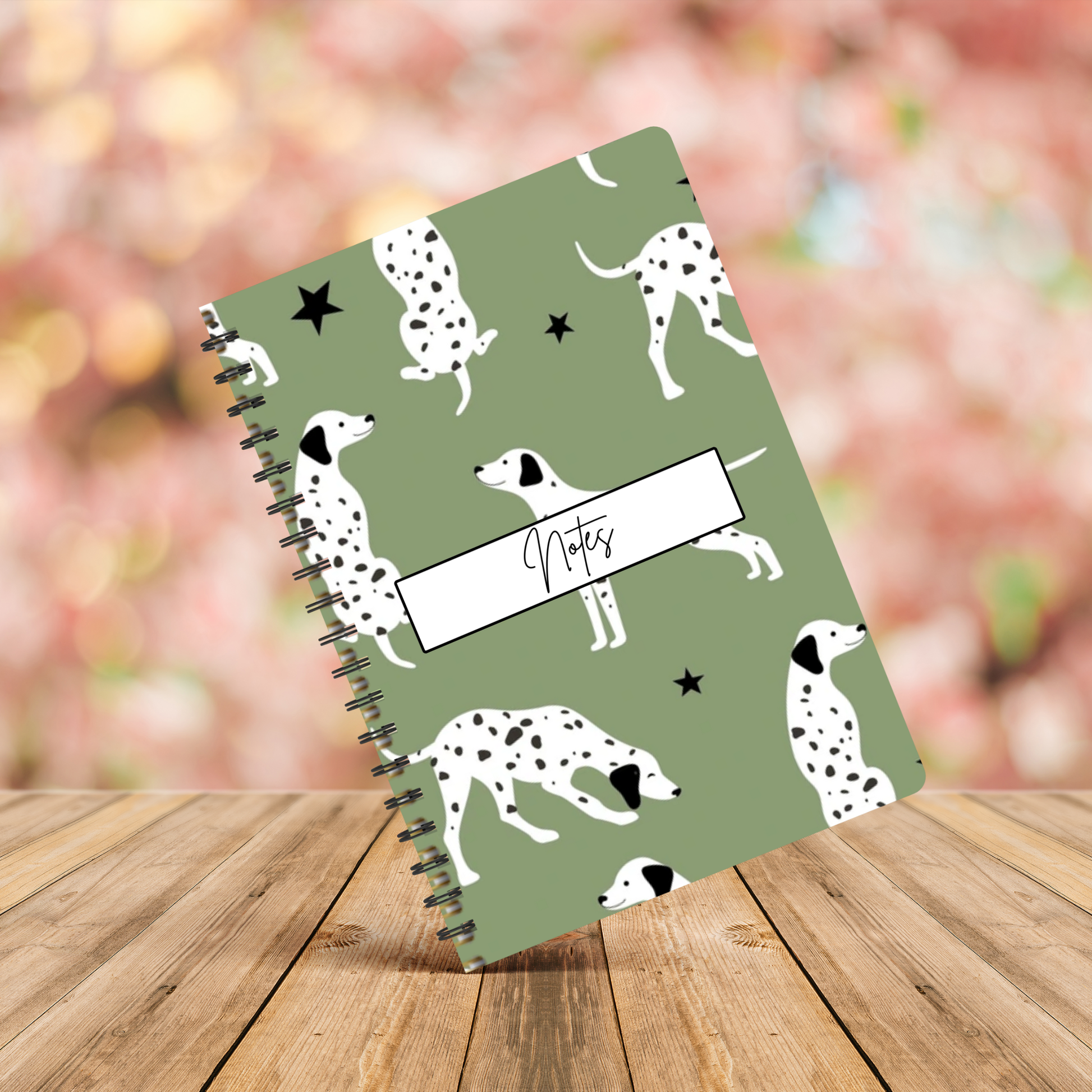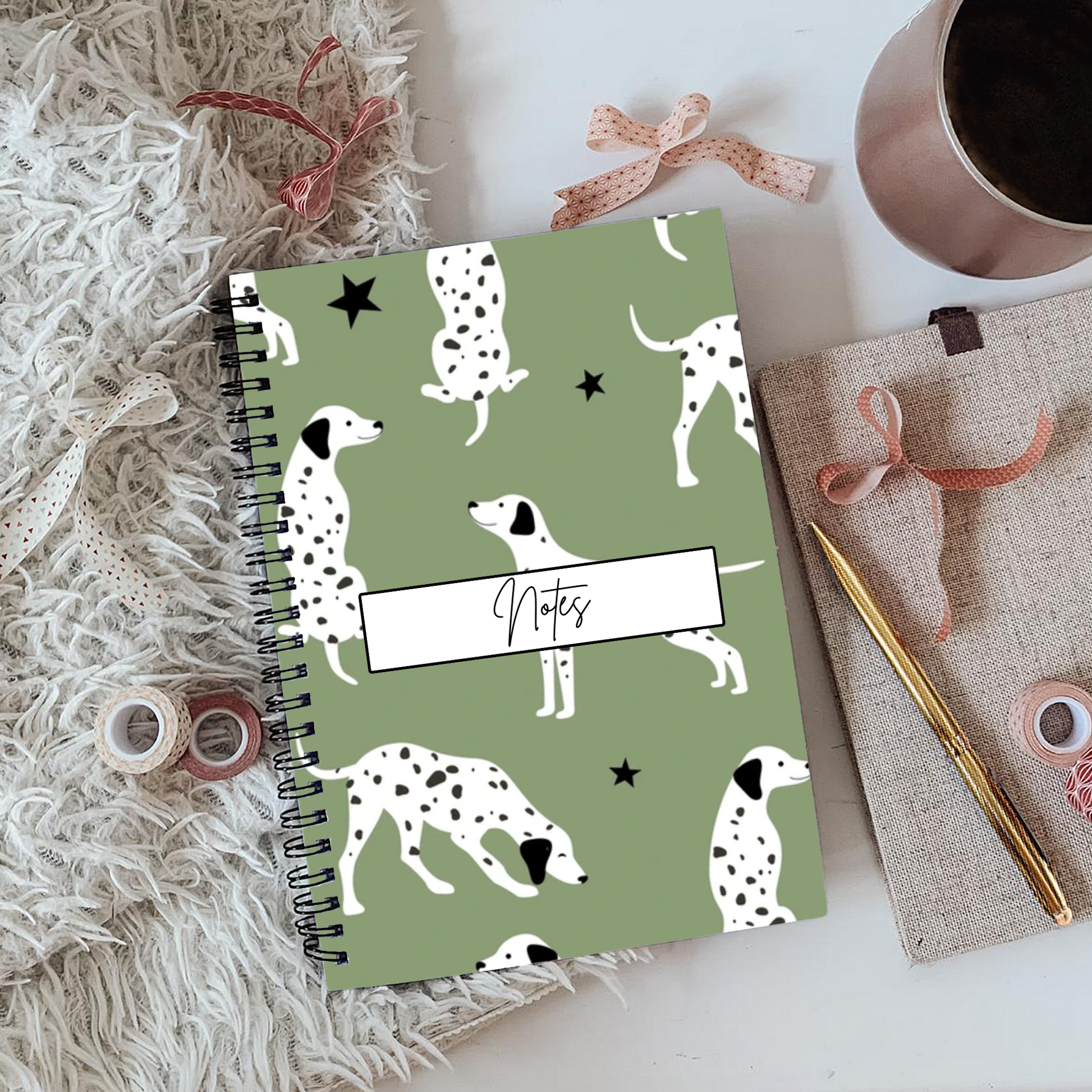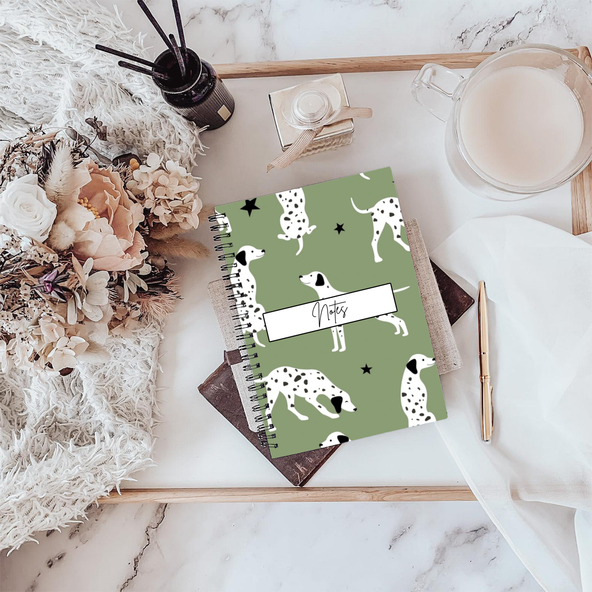 Dalmatian Sage Green Notebook A5 or A4, Dog mum gift, Dalmatian print notebook stationery for work, student