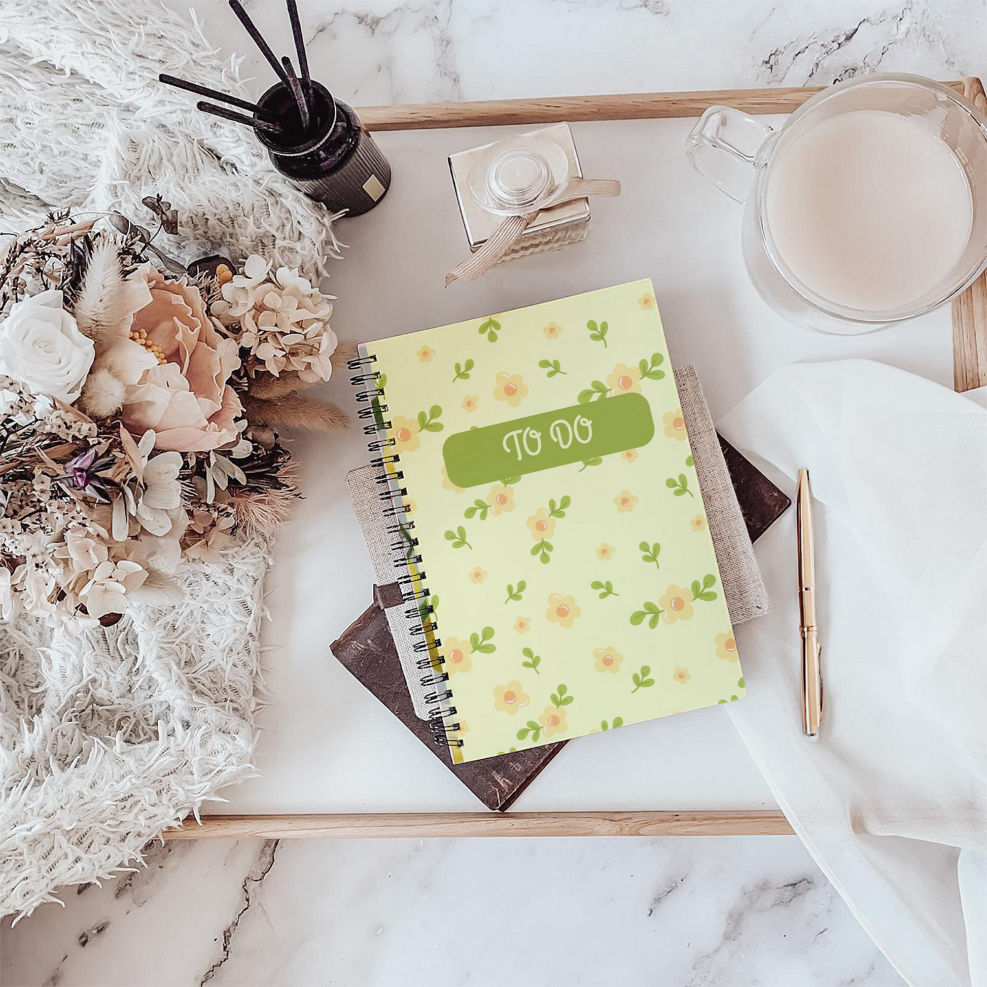 Keep your week on track with this cute and cheerful ditsy floral to-do list notebook. With its soft yellow background, scattered peach flowers, and fresh green accents, this notebook brings a happy, springtime vibe to your planning. The simple interior layout helps you break tasks down by priority, track what needs doing, and feel a little more in control.