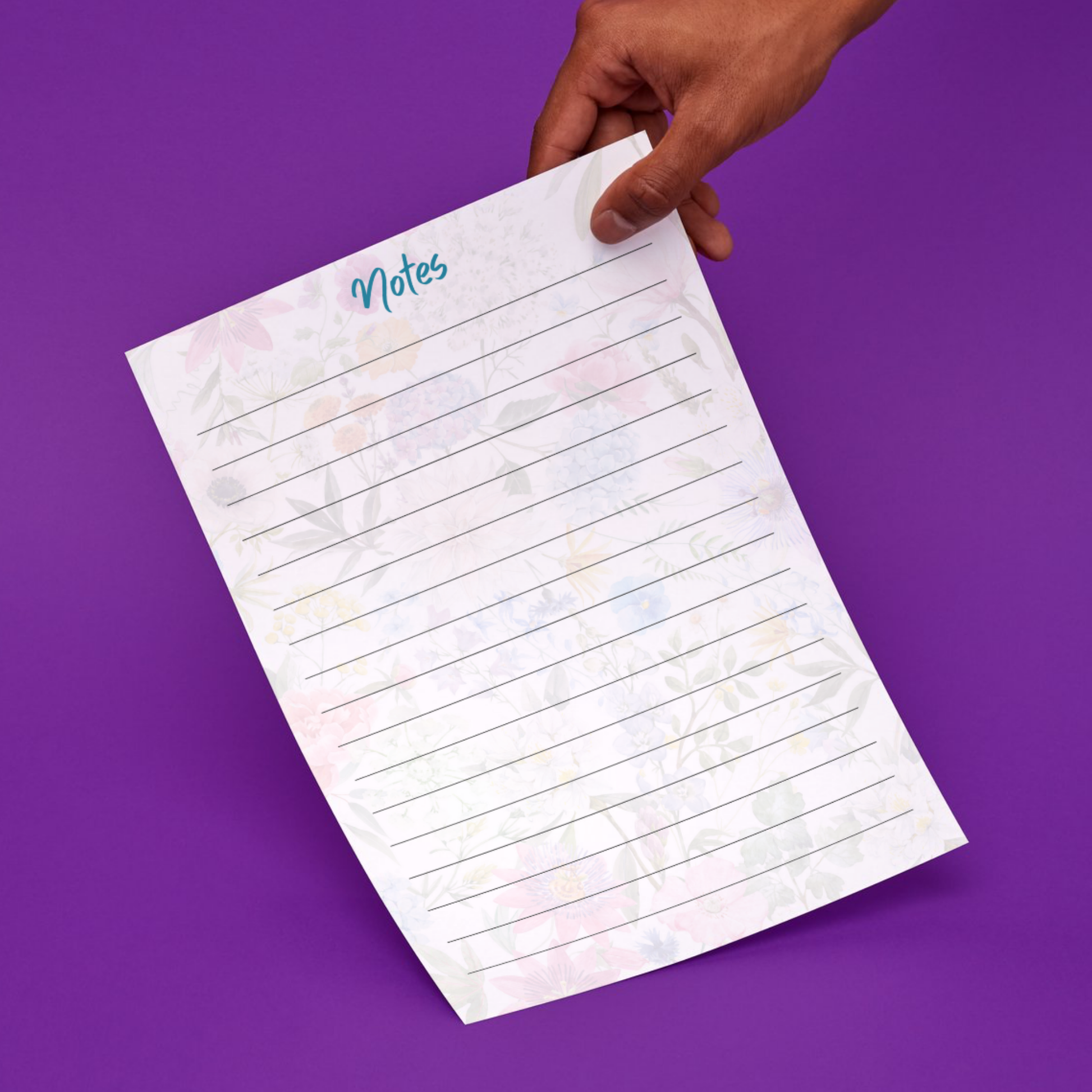 Add a touch of calm to your notes with this floral patterned lined insert. Whether you’re jotting down ideas, journaling, or just making lists, the gentle design brings a bit of beauty to the everyday.