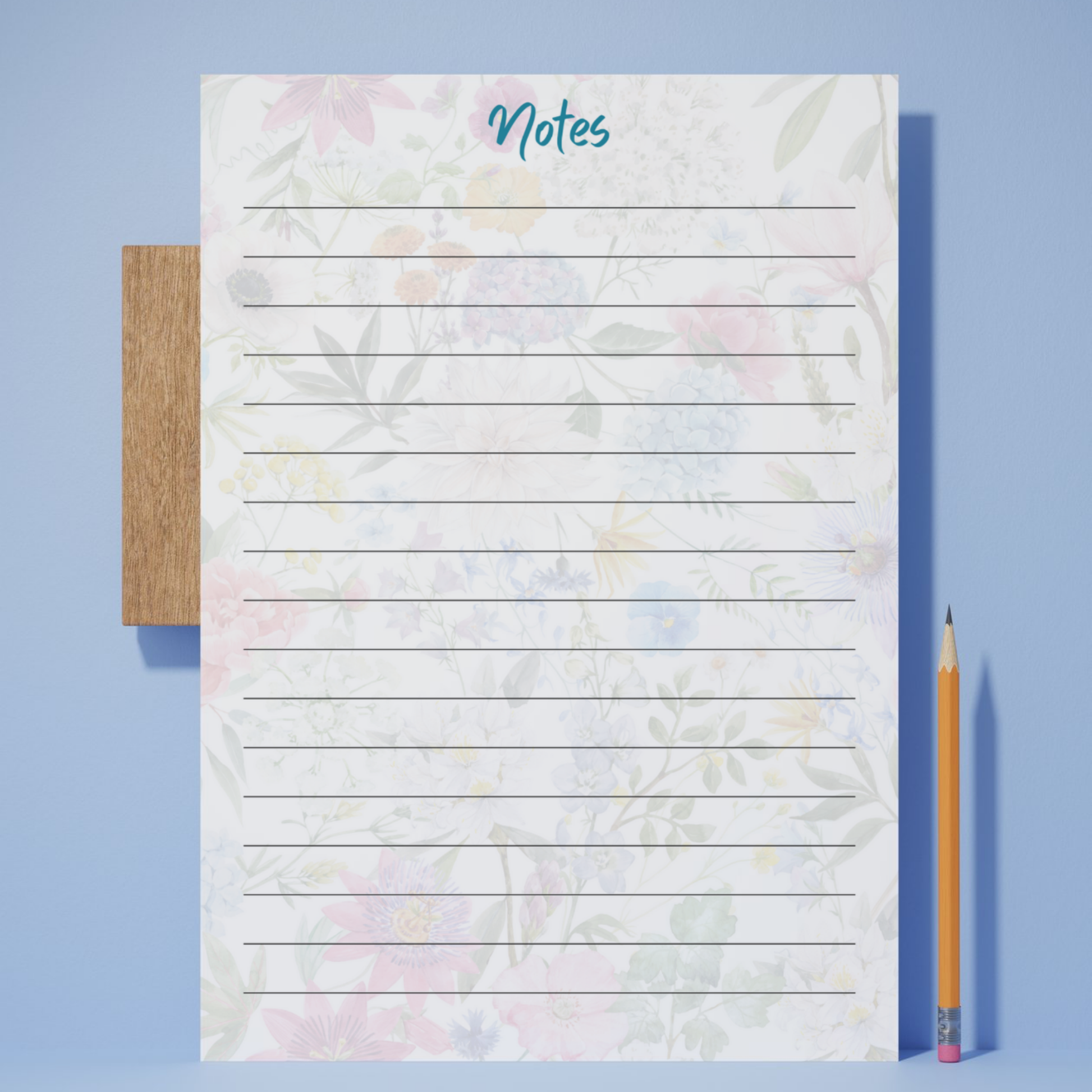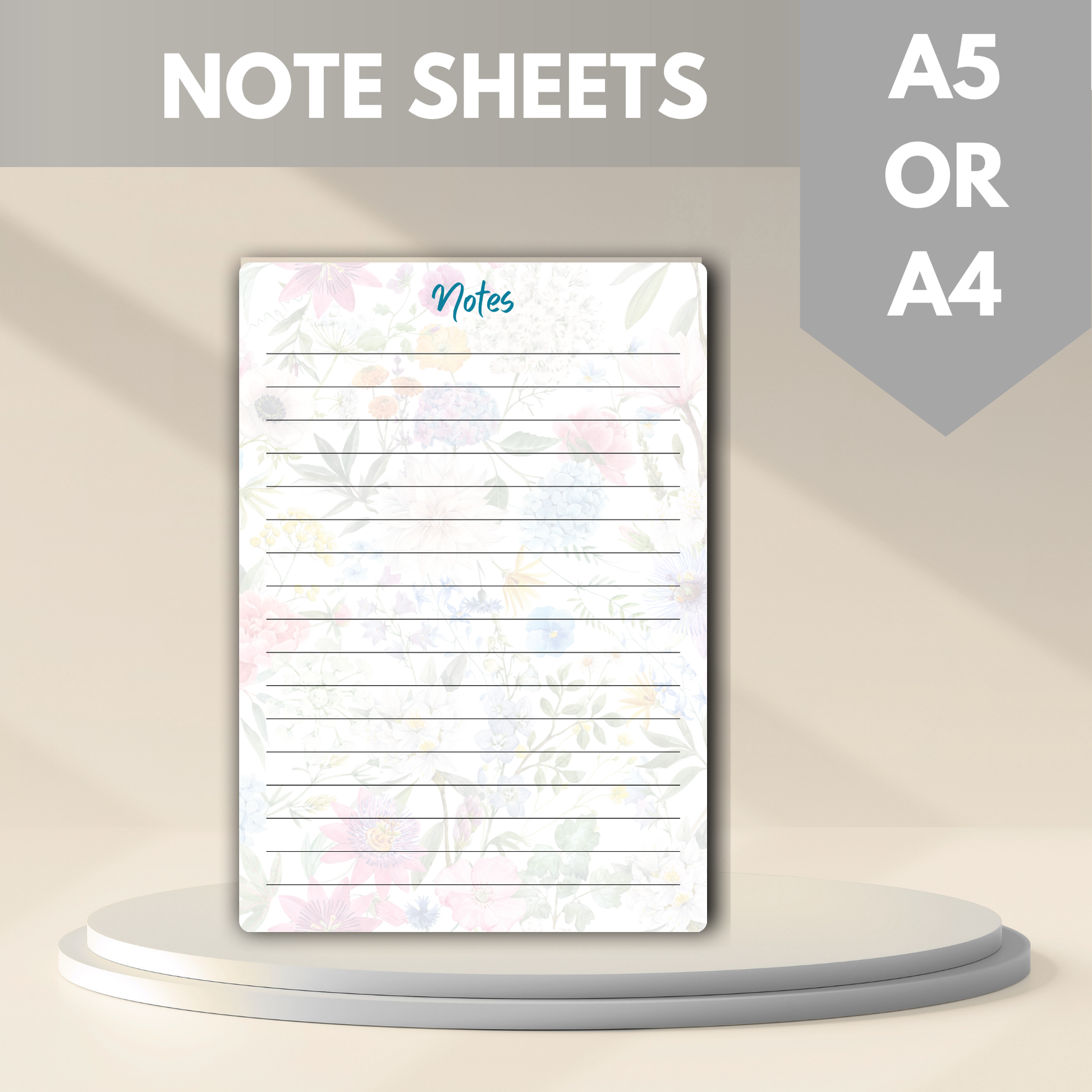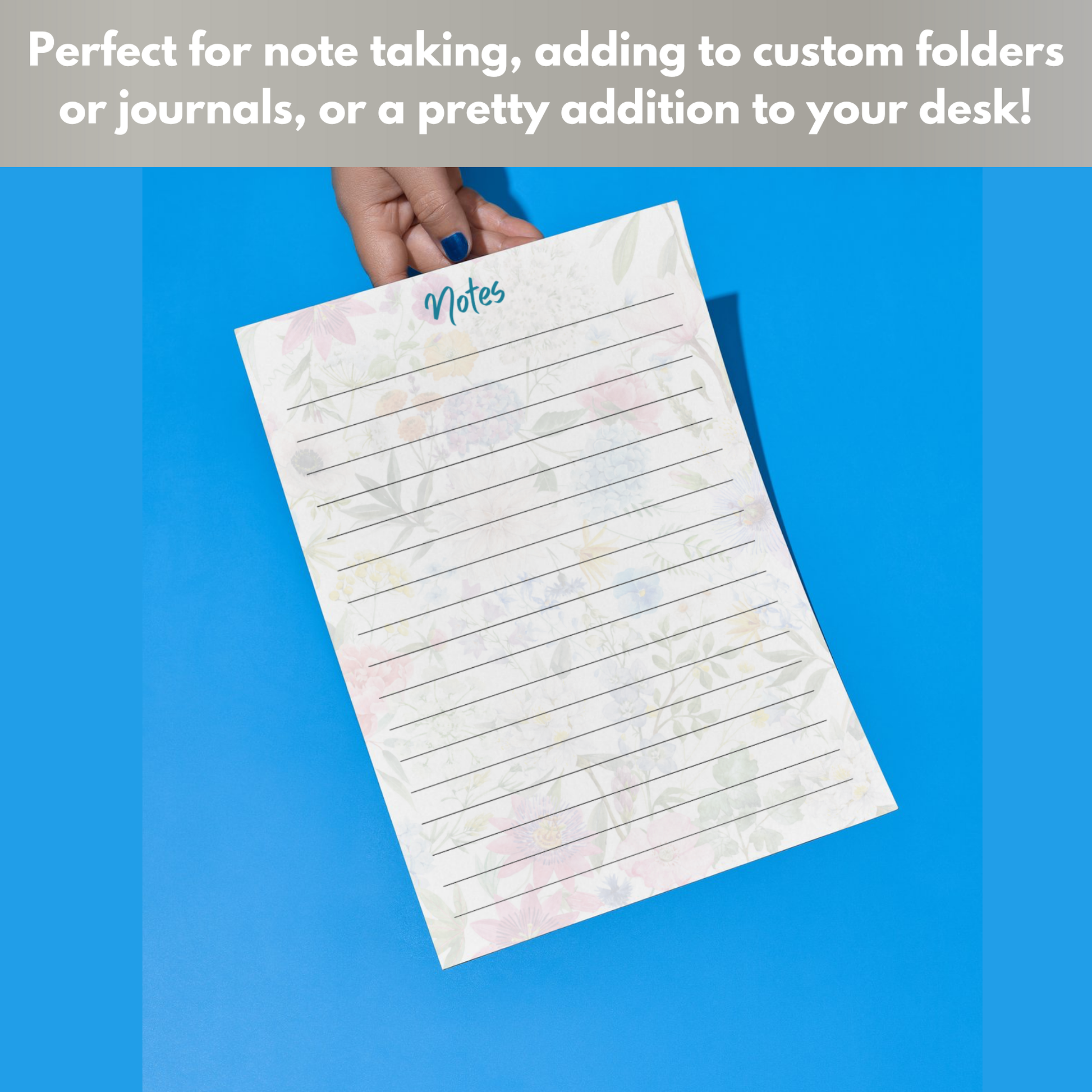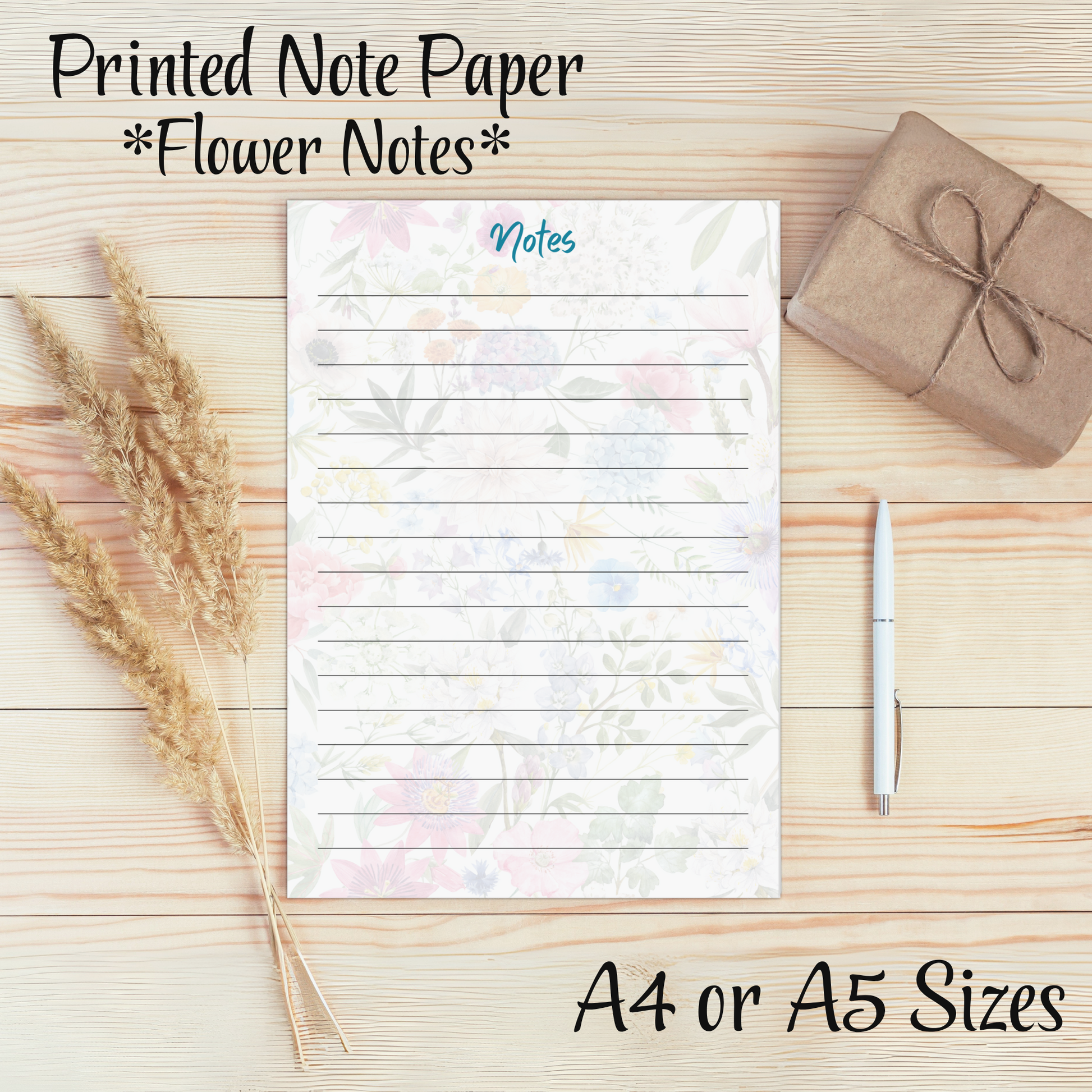 Floral Pattern Note List, Lined Printed Note Paper - A4 or A5 sizes, Work Study or Class stationery, Lined paper inserts