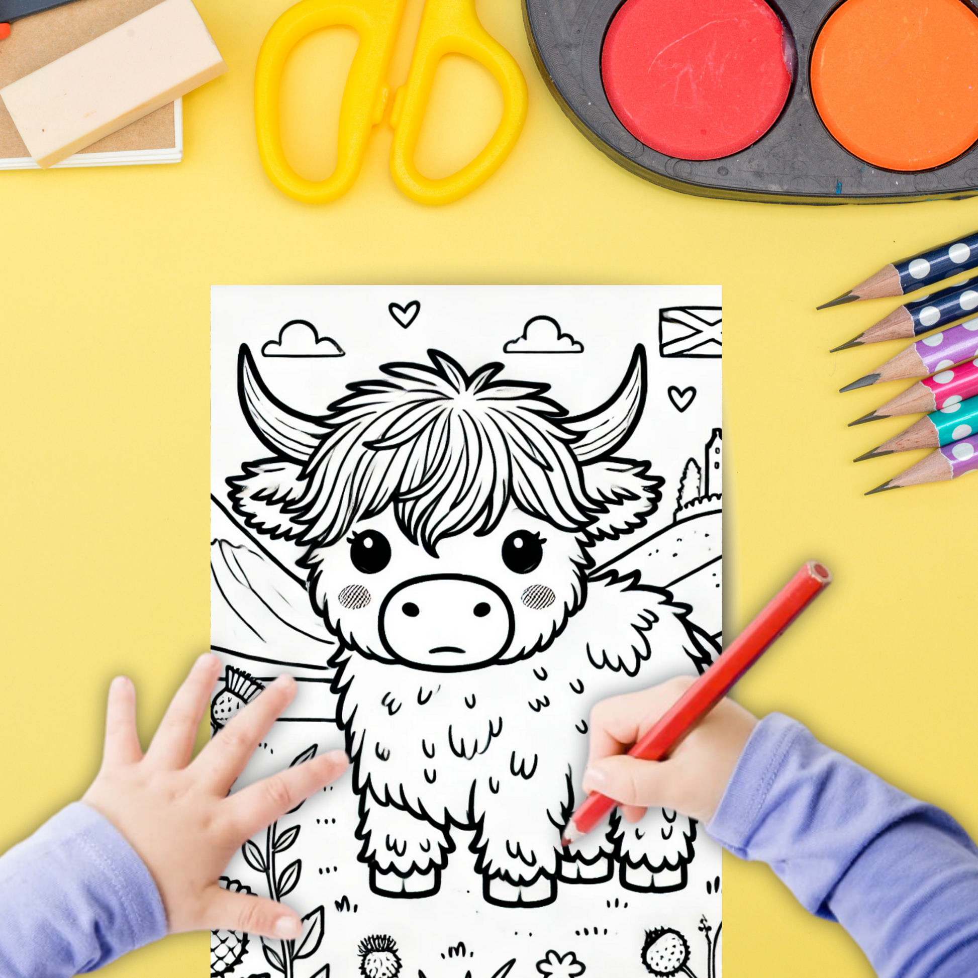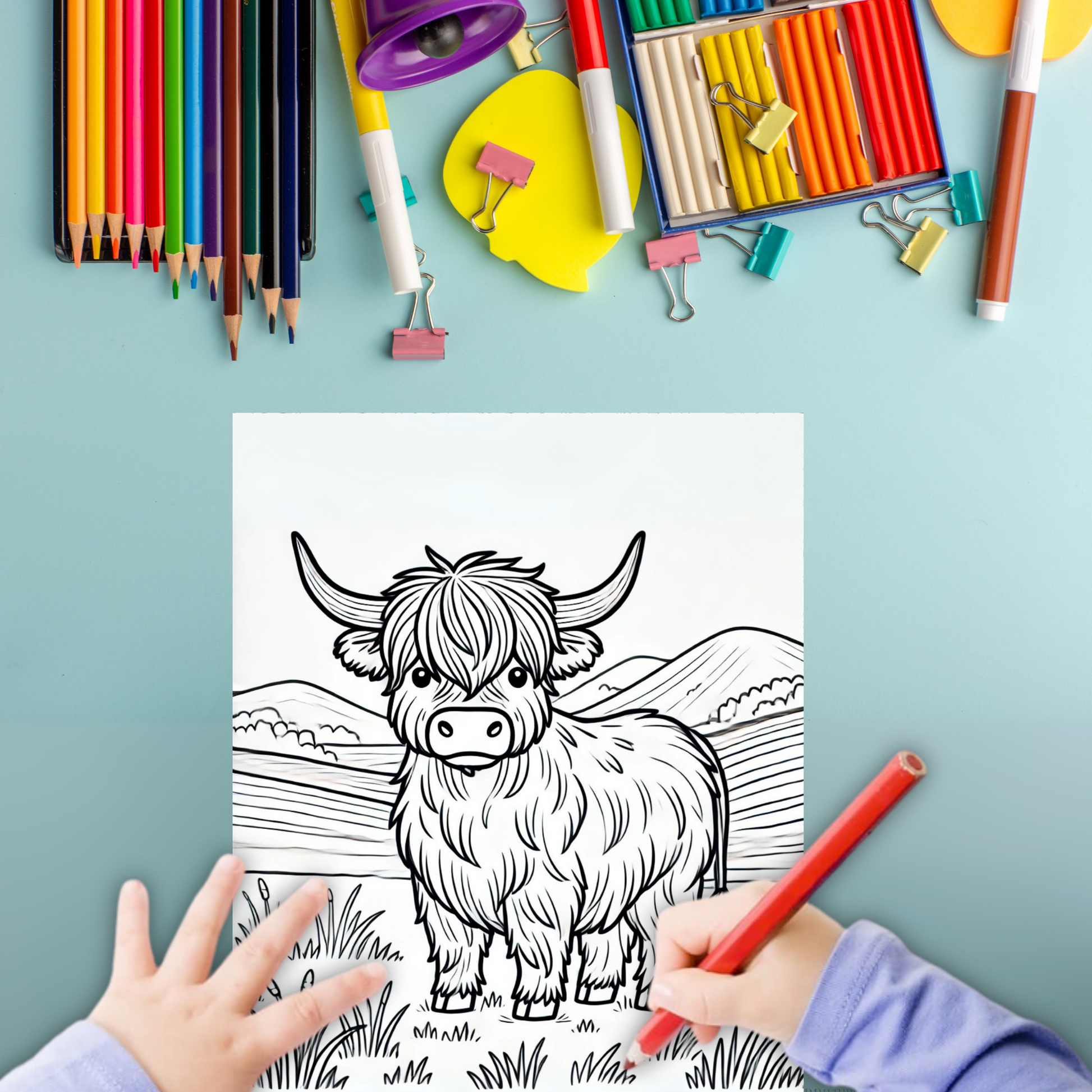 Discover the joy of the Highlands with our Highland Coo Colouring Sheet Pack! Ideal for animal lovers and colouring enthusiasts of all ages, this pack showcases adorable illustrations of Highland cows in scenic settings, from lush fields to rugged Highland backdrops. Unleash your creativity and bring these gentle giants to life with your favourite colours.
