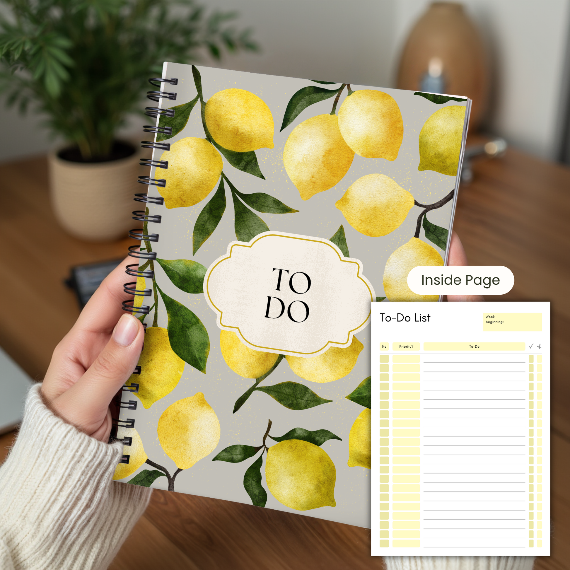 Add a splash of sunshine to your day with this bright and cheerful lemon-themed to-do list notebook. Designed to lift your mood while keeping you on track, it features a fun citrus cover and a fresh yellow layout inside that makes your weekly planning feel a little less like a chore.