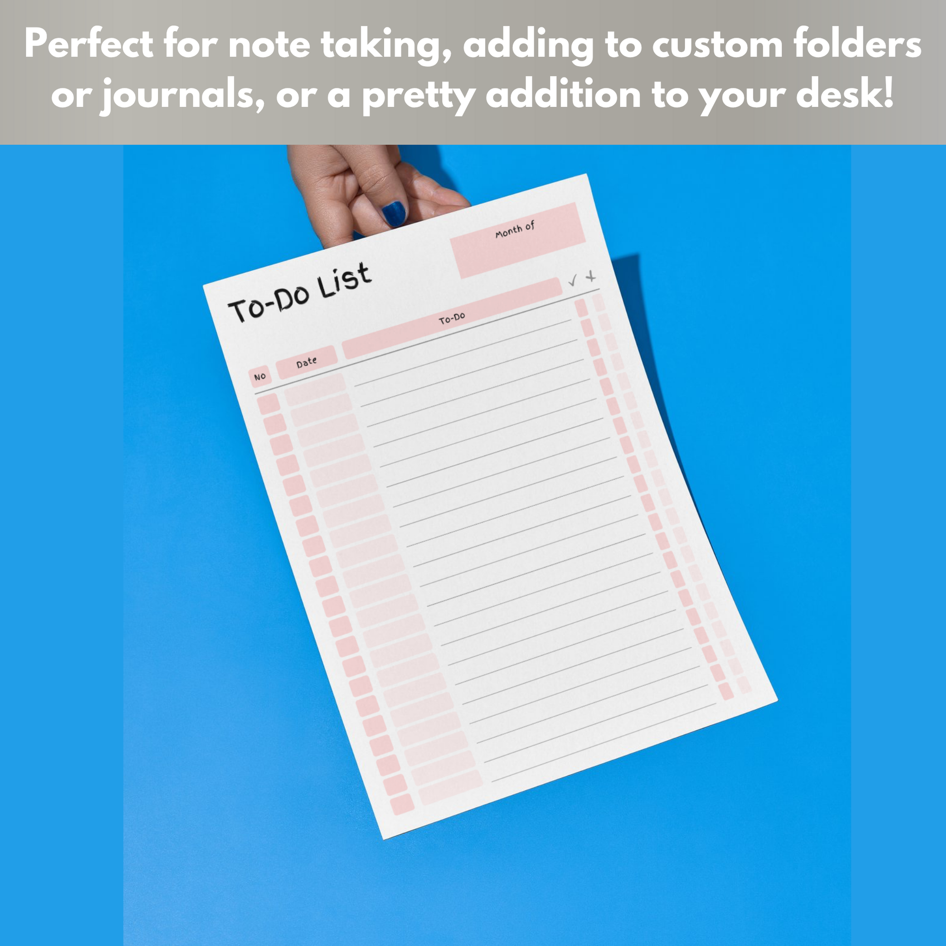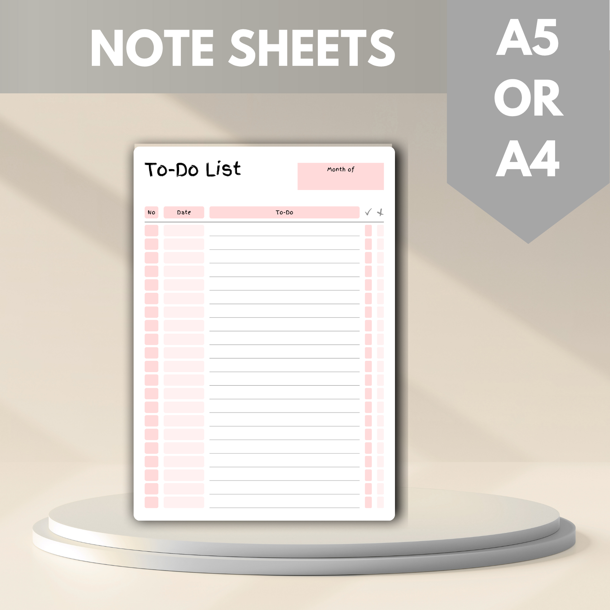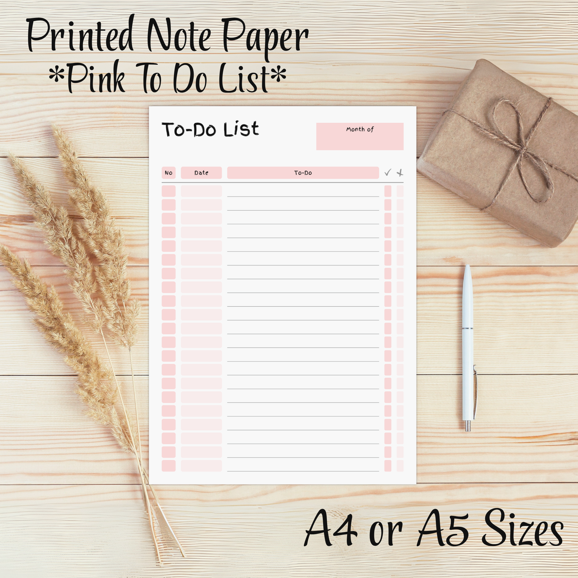 To Do List, Lined Printed Note Paper Pink - A4 or A5 sizes, Work Study or Class stationery, Lined paper inserts
