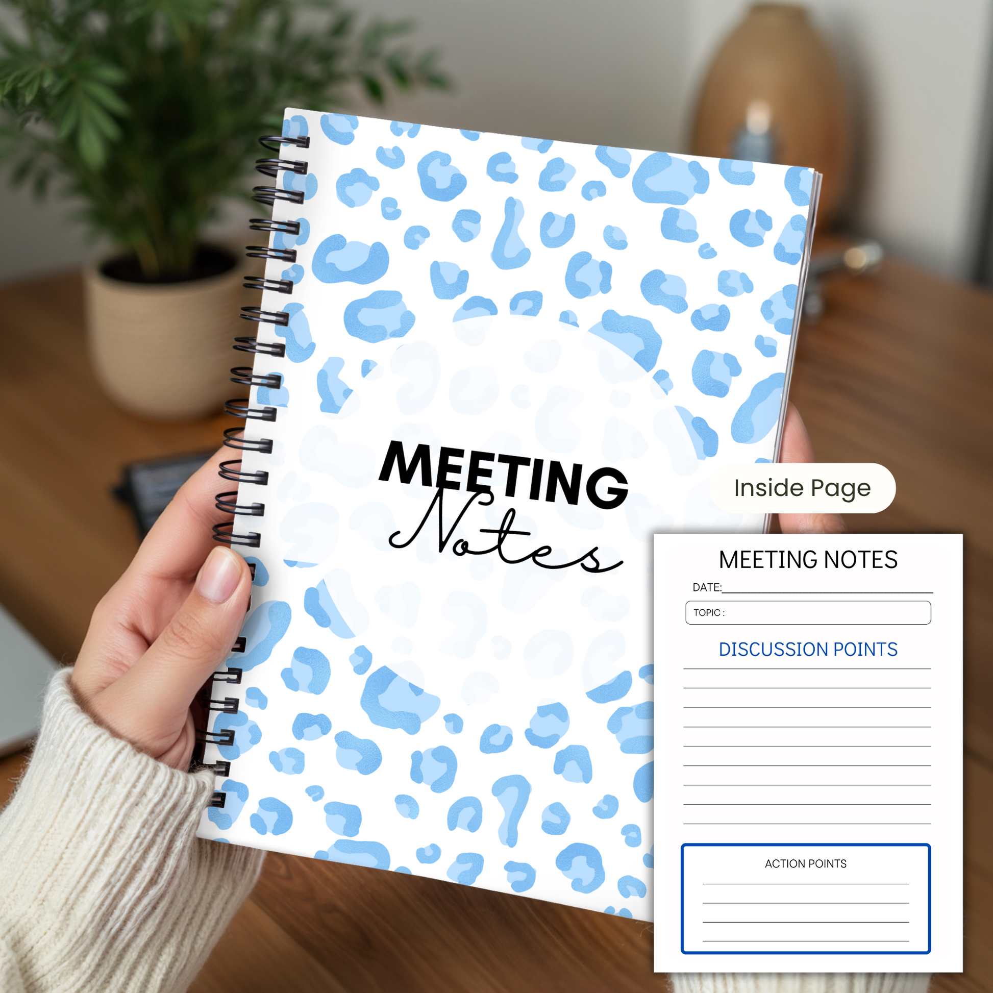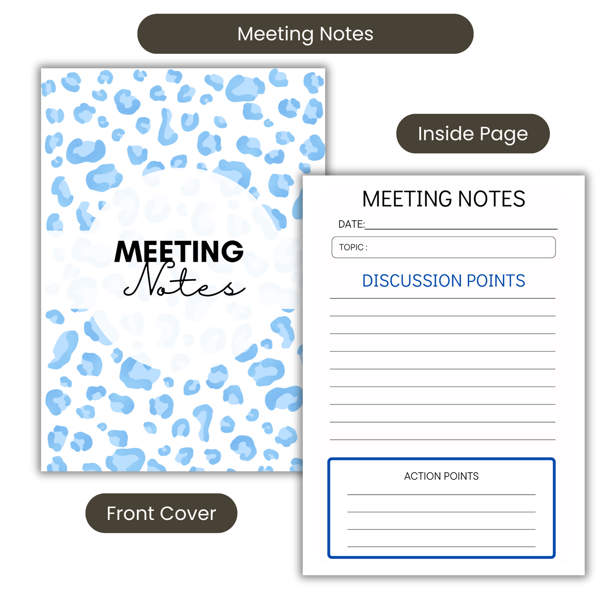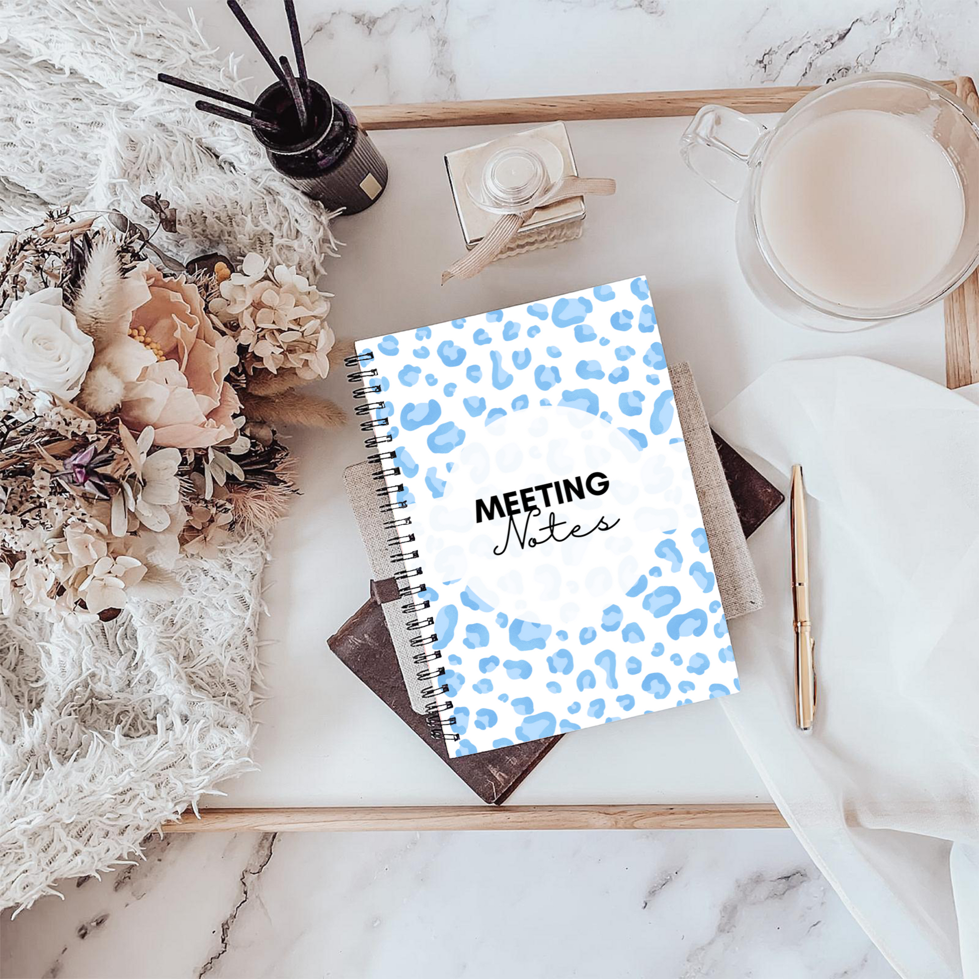 Meeting Notes Book Baby Blue Animal Print A5 or A4, Meeting Agenda Notes, Printed lined inserts, work stationery organiser