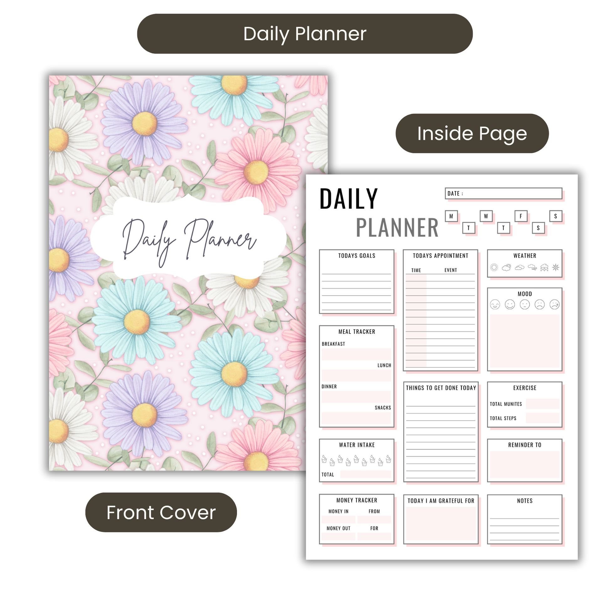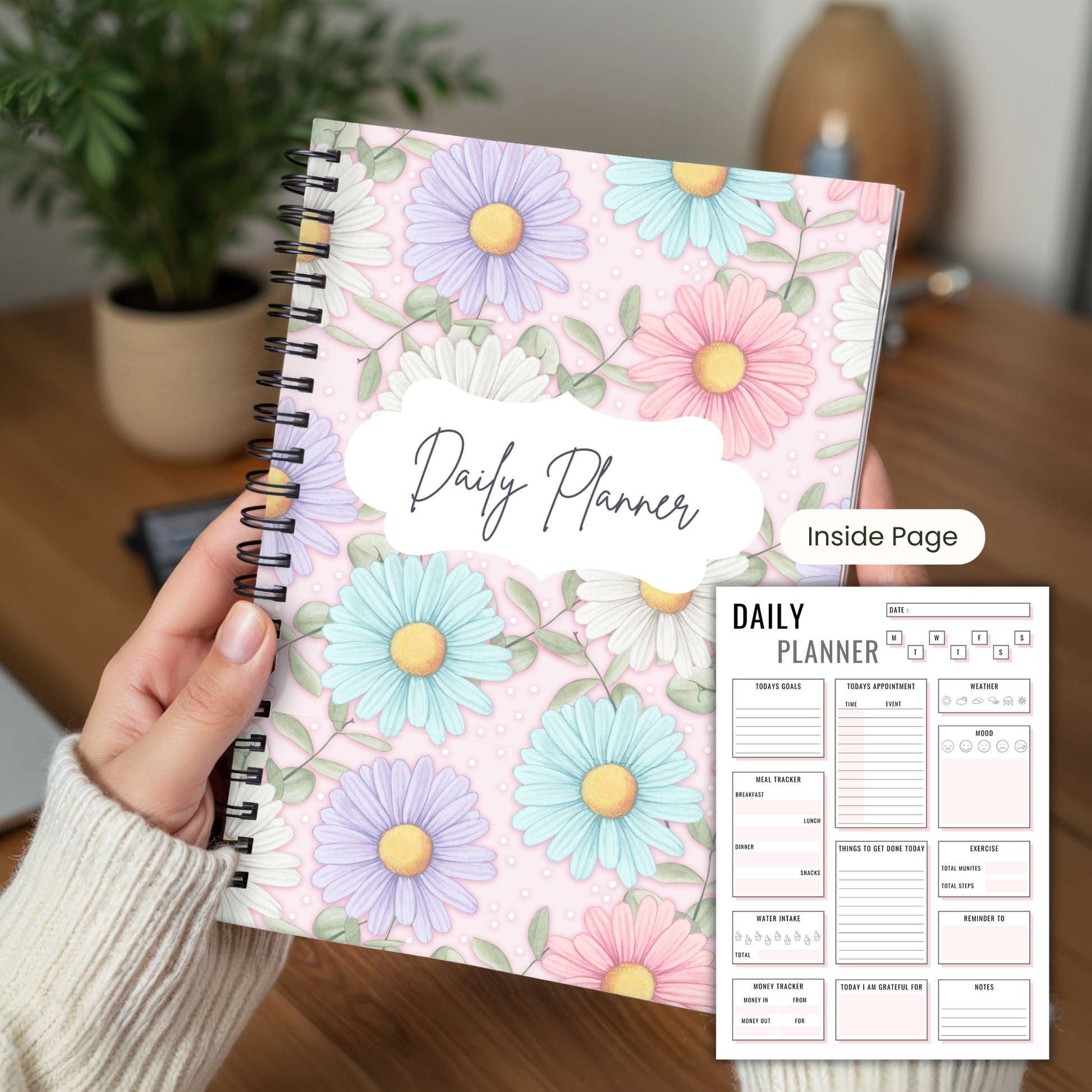 - Elegant Design: Our Daily Planner comes in a beautiful Pastel Daisies cover, adding a refreshing and stylish look to your desk.