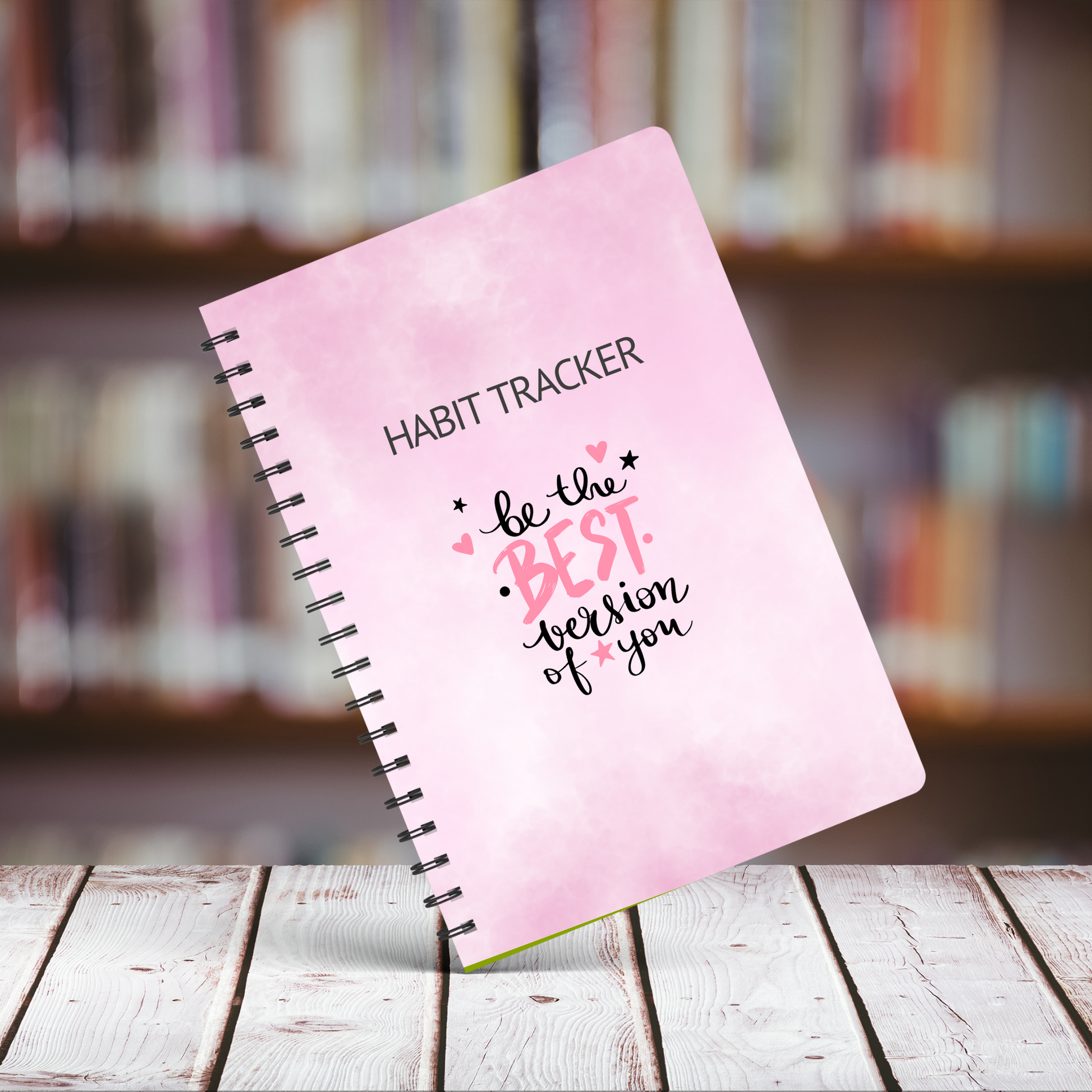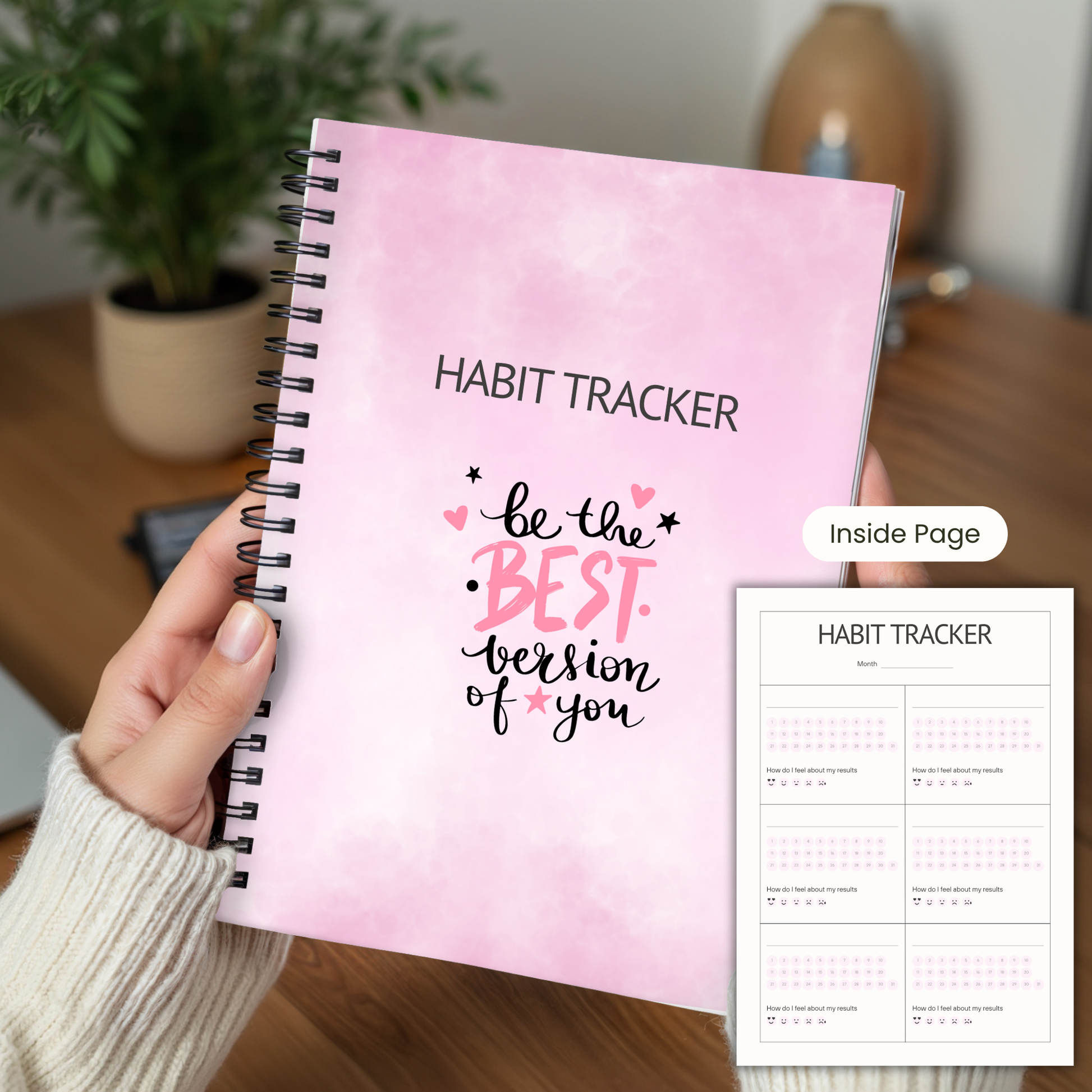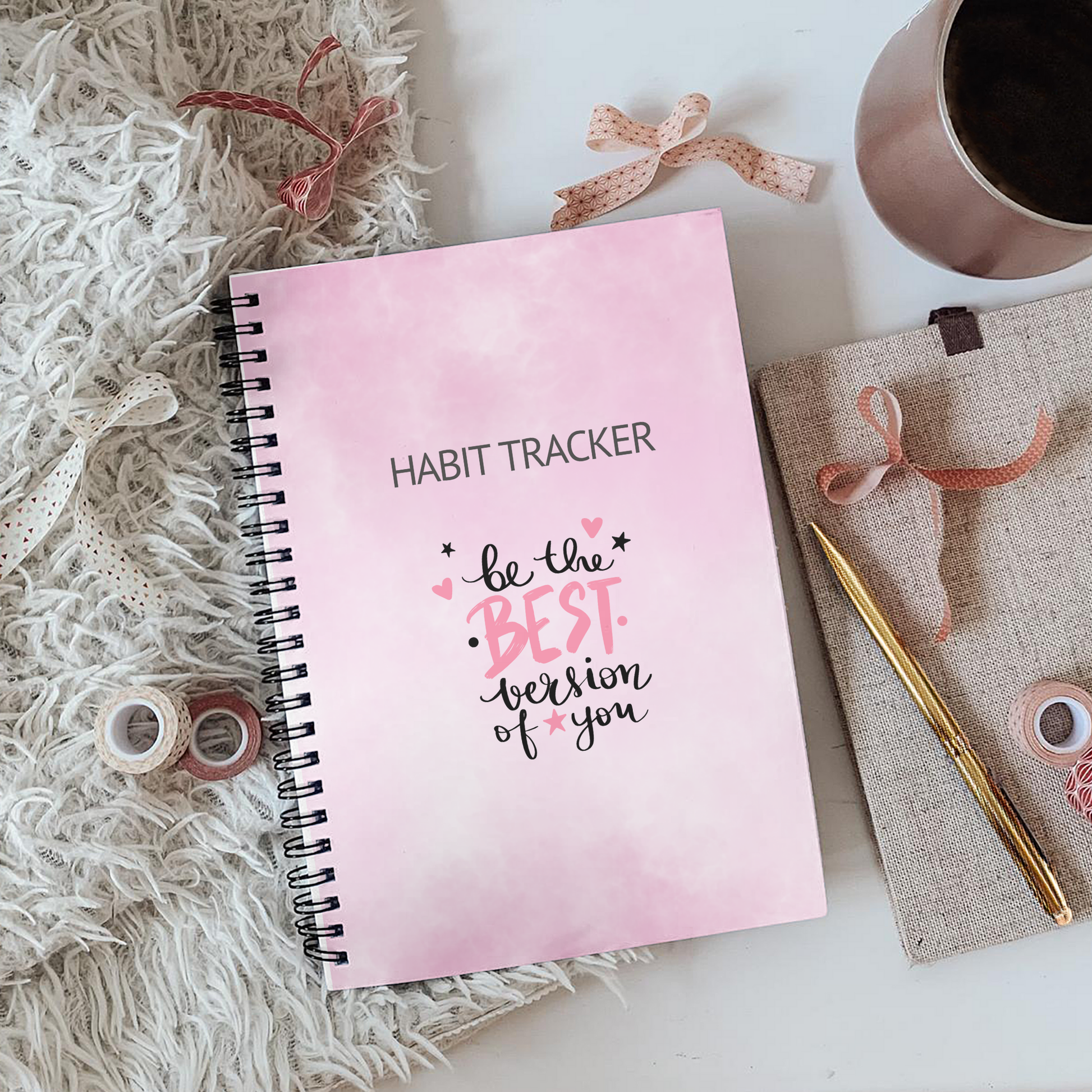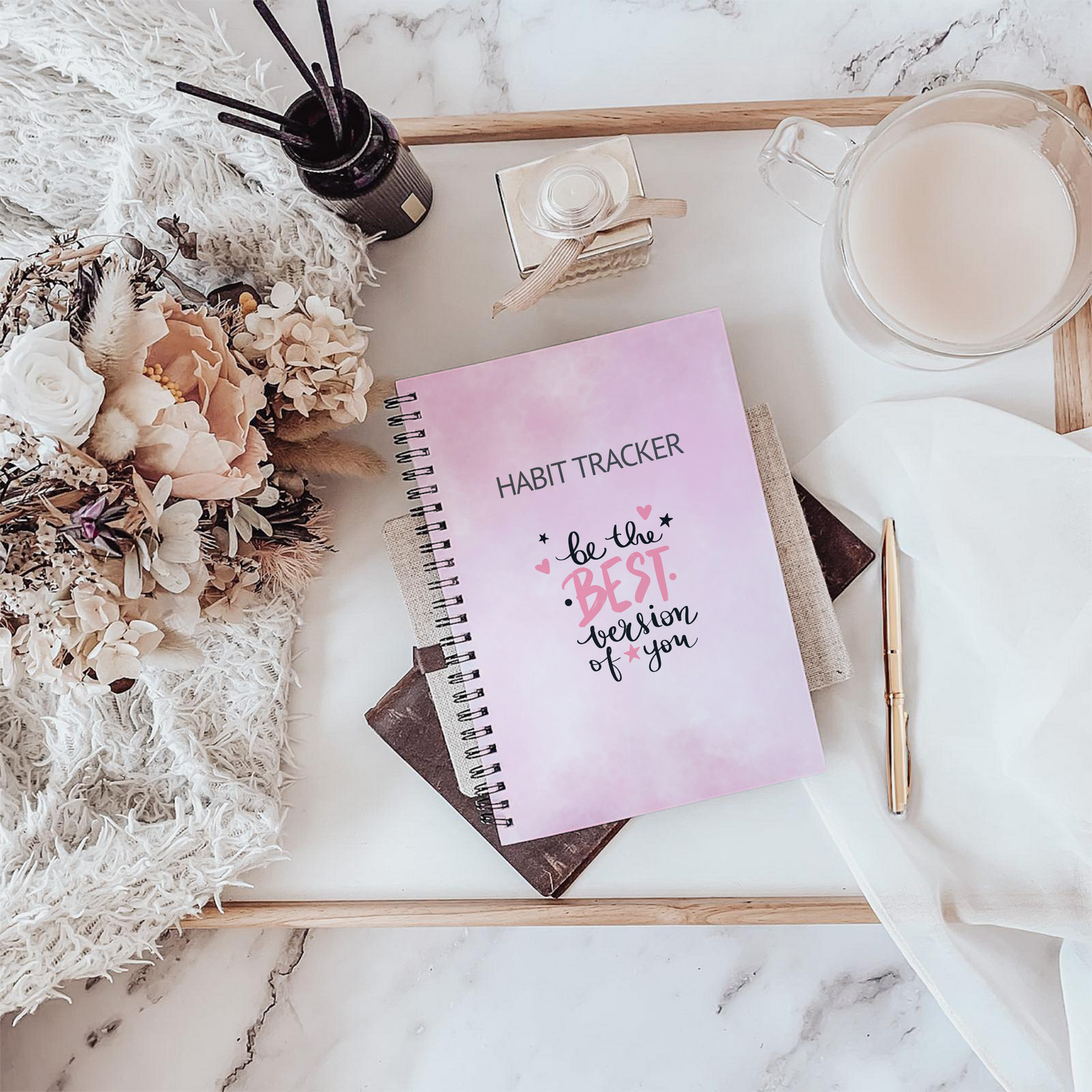 Stay on top of your goals with our chic pink design Habit Tracker Notebook, featuring lined and grid pages designed for tracking daily habits and progress in a stylish and organised way.