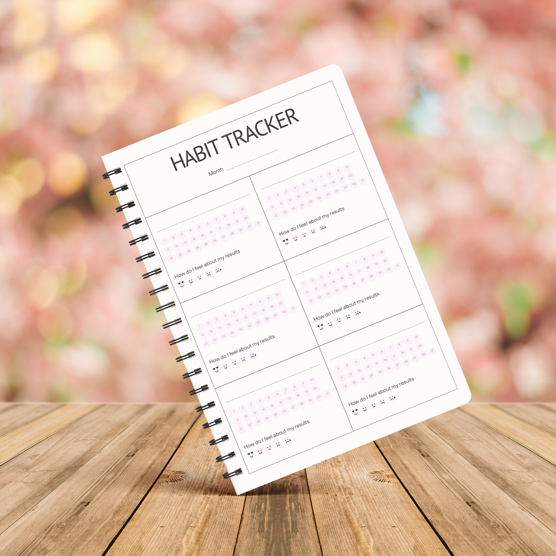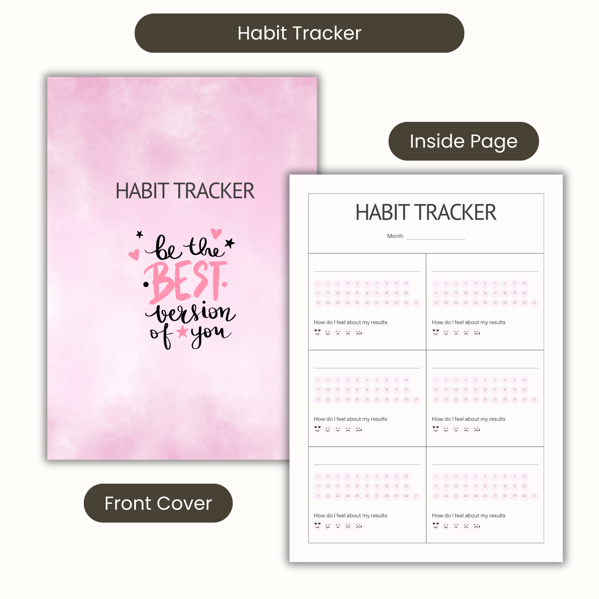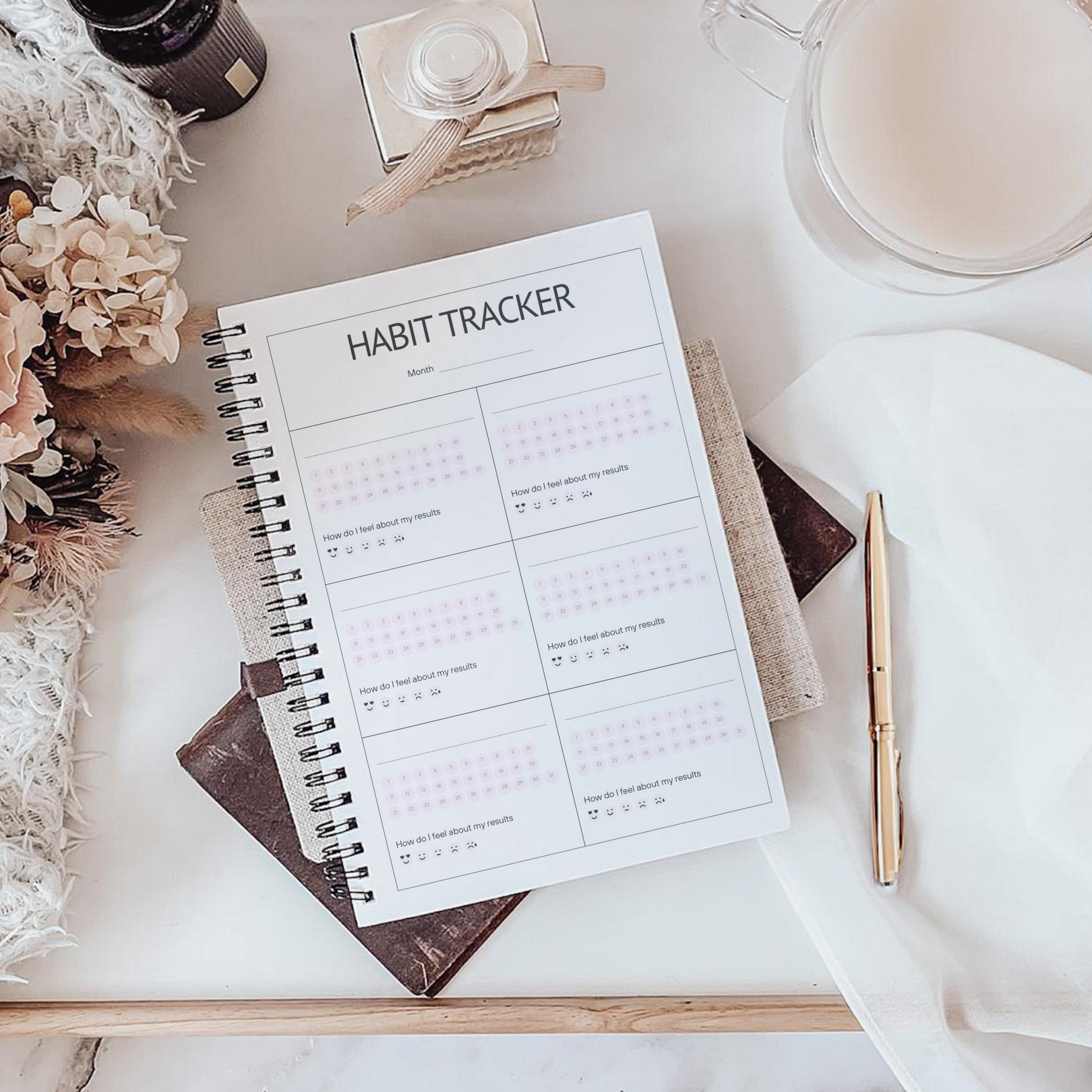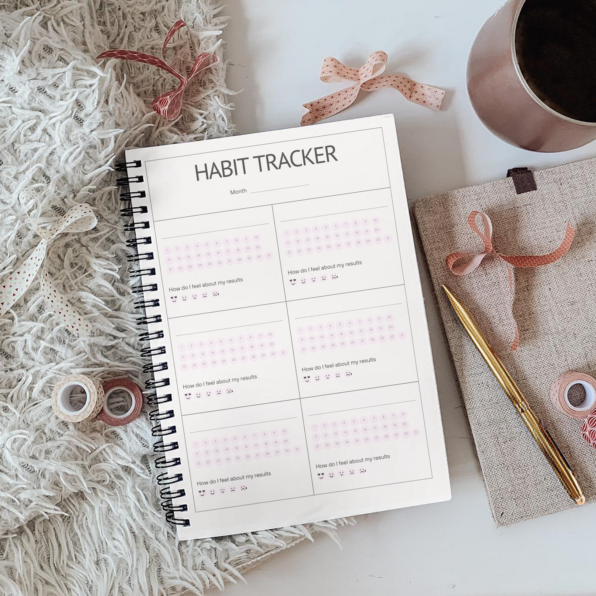 Stay on top of your goals with our chic pink design Habit Tracker Notebook, featuring lined and grid pages designed for tracking daily habits and progress in a stylish and organised way.