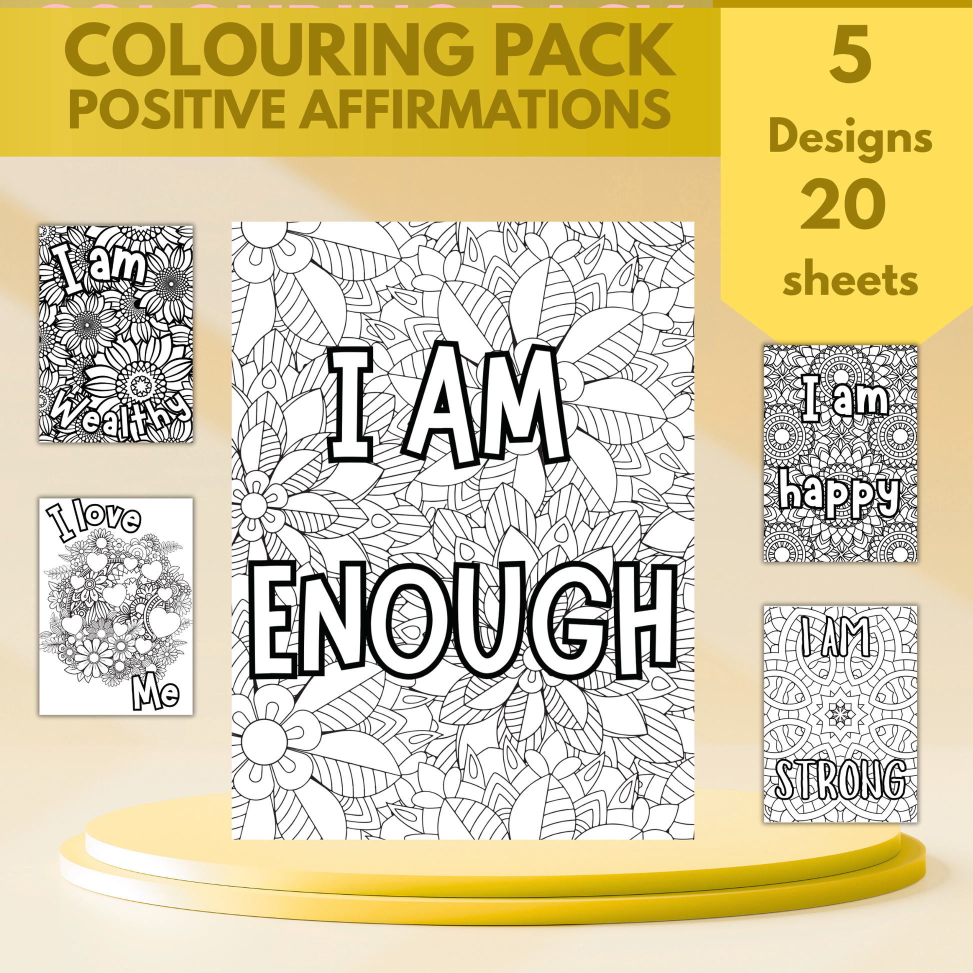 Pack Details: 4 different affirmation-themed designs, with 5 copies of each – that’s 20 high-quality A4 sheets in total