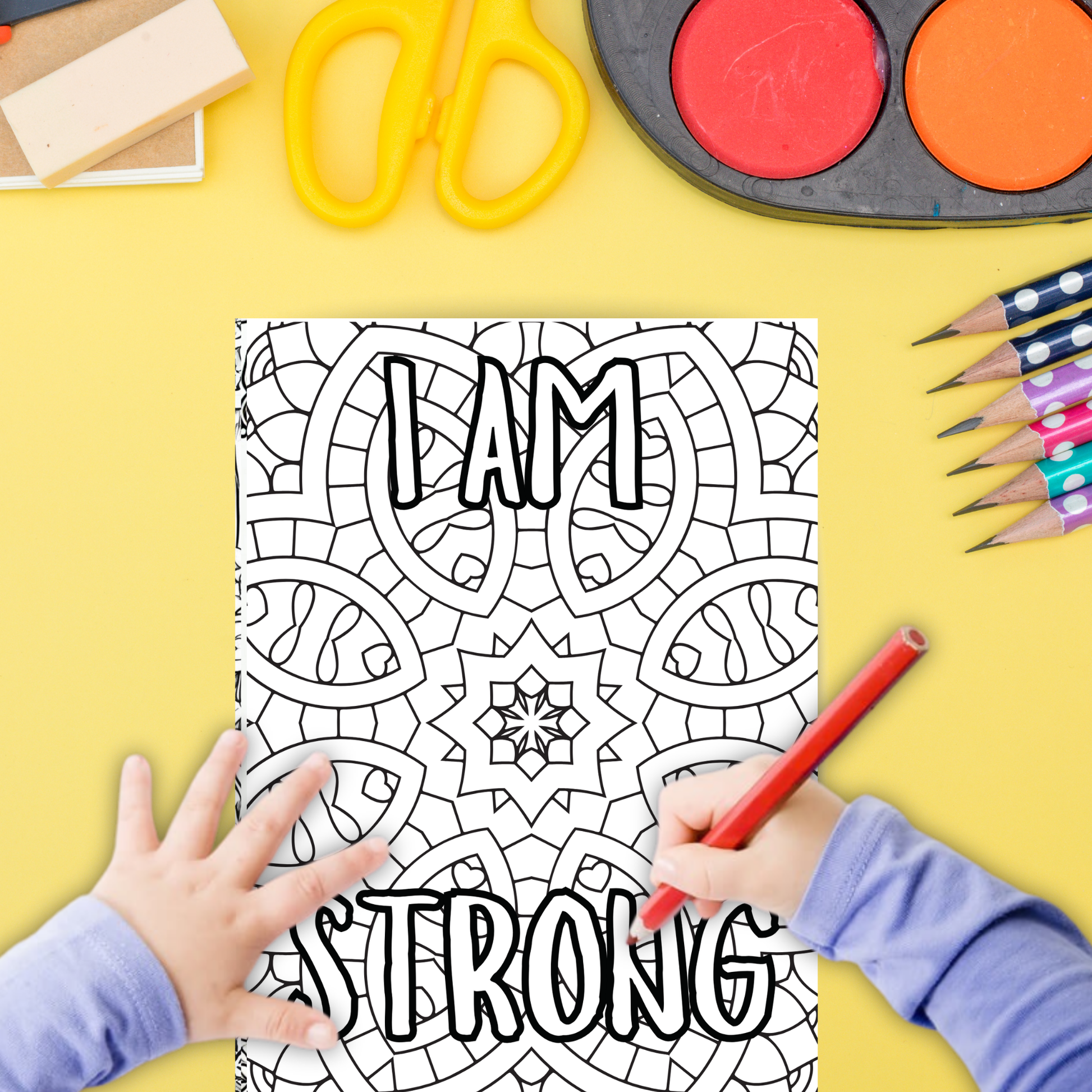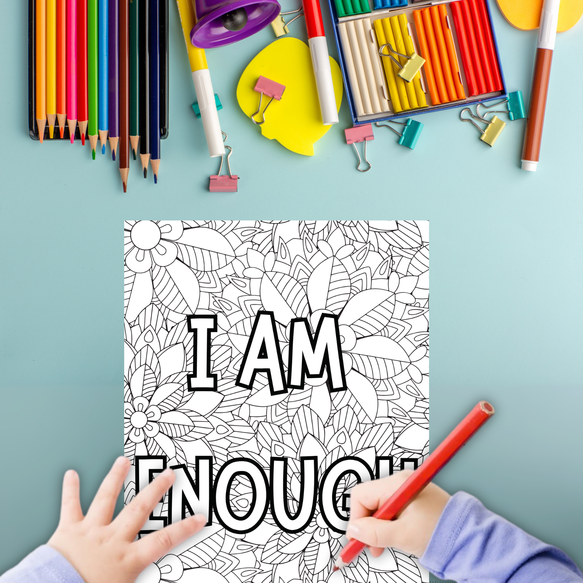 Positive Affirmations colouring sheet pack - 4 designs, 20 sheets, Kids and Adult colouring pack, bespoke colouring sheet stationery