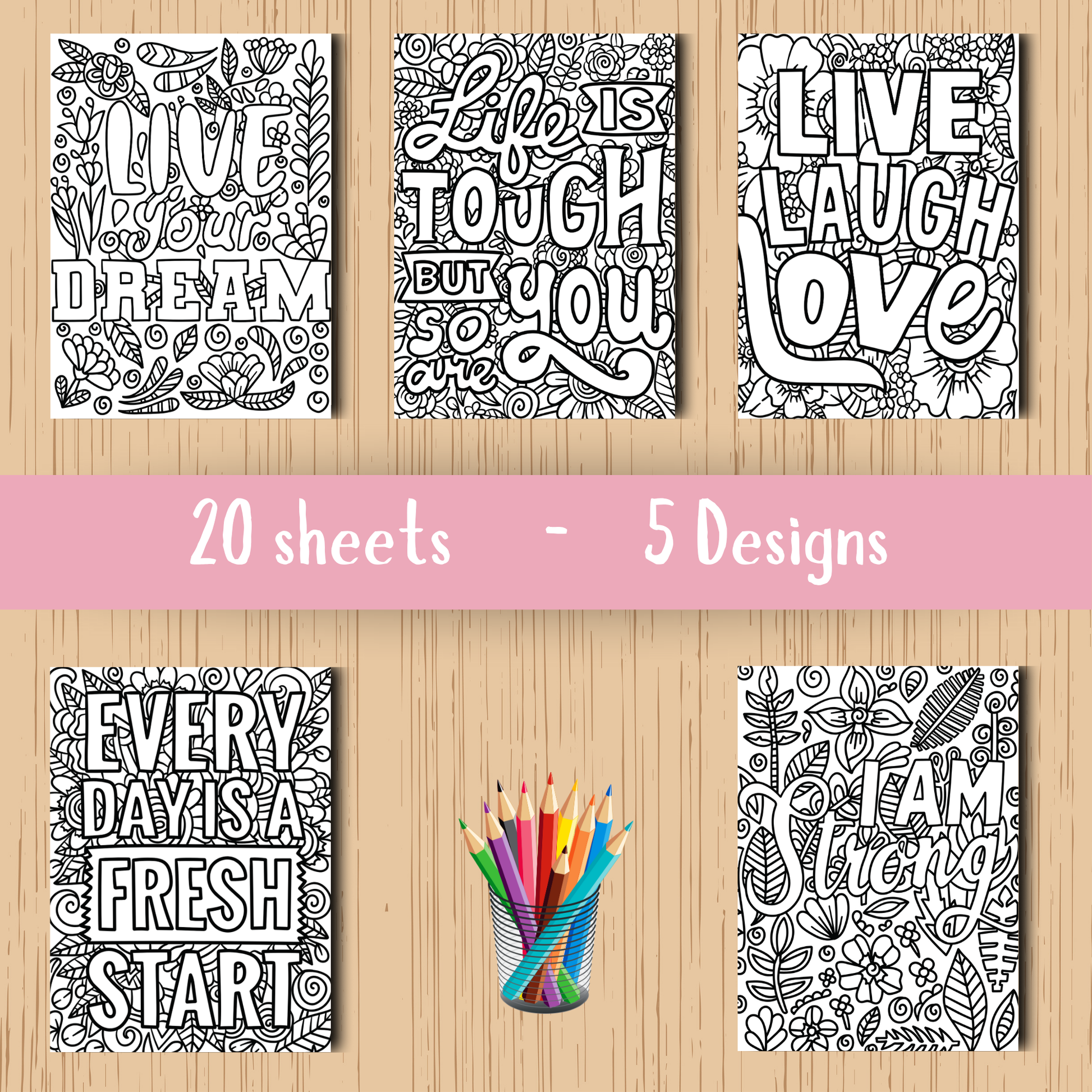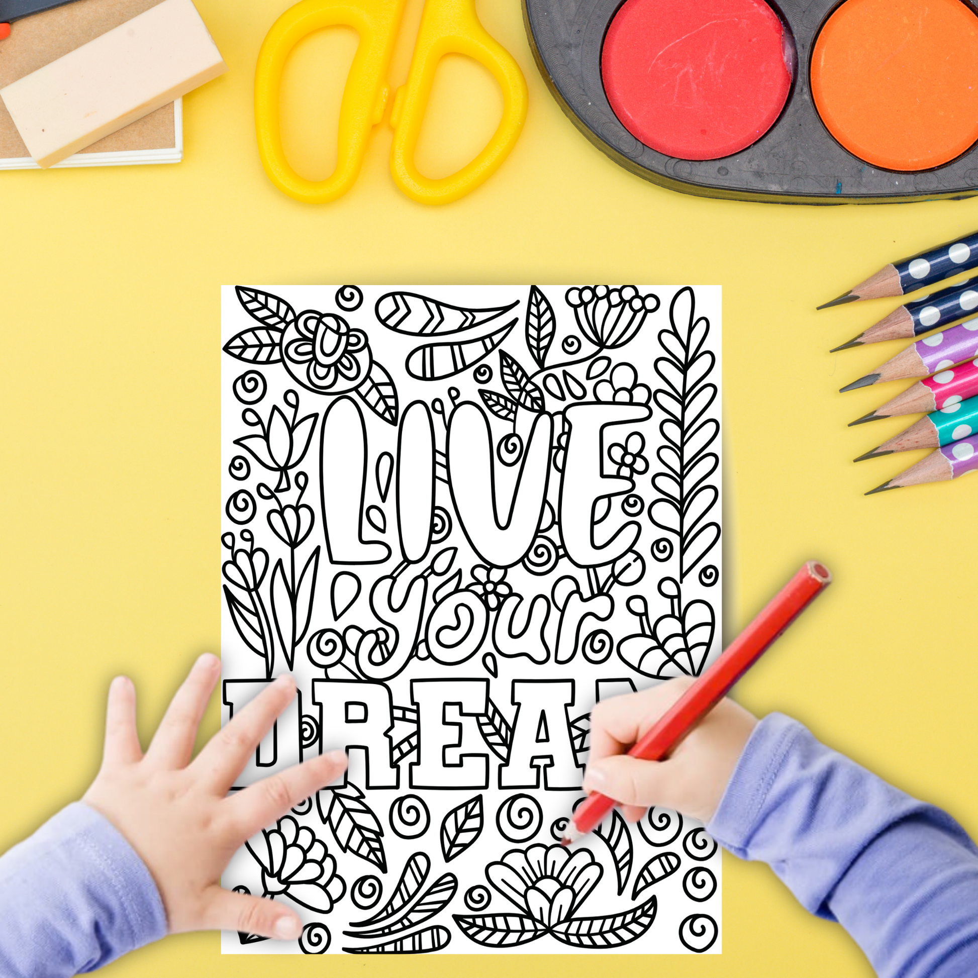 Positive Quotes colouring sheet pack - 4 designs, 20 sheets, Kids and Adult colouring pack, bespoke colouring sheet stationery