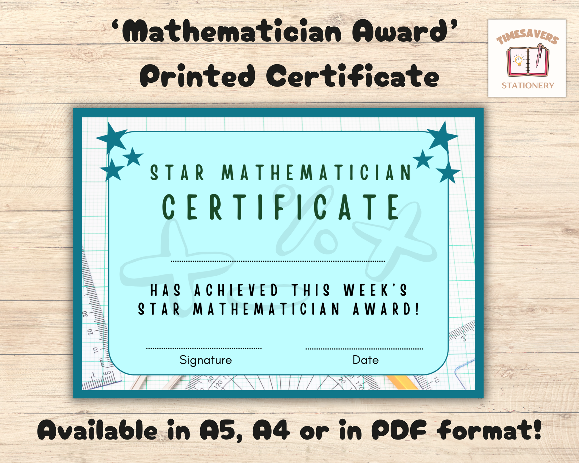 Printed Mathematician of the Week Pupil Award, A4 or A5 certificates, classroom management resources, teacher class resources, home school