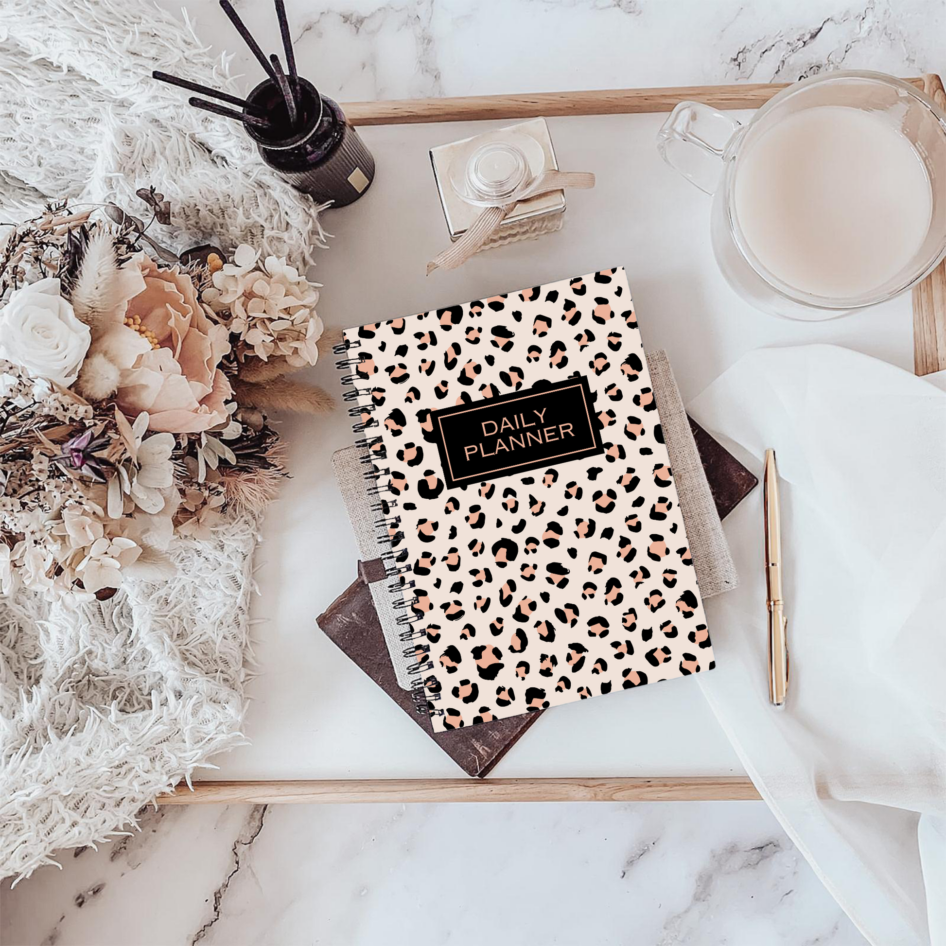 - Elegant Design: Our A5 Daily Planner comes in a beautiful Rose Gold Animal Print cover, adding a refreshing and stylish look to your desk.