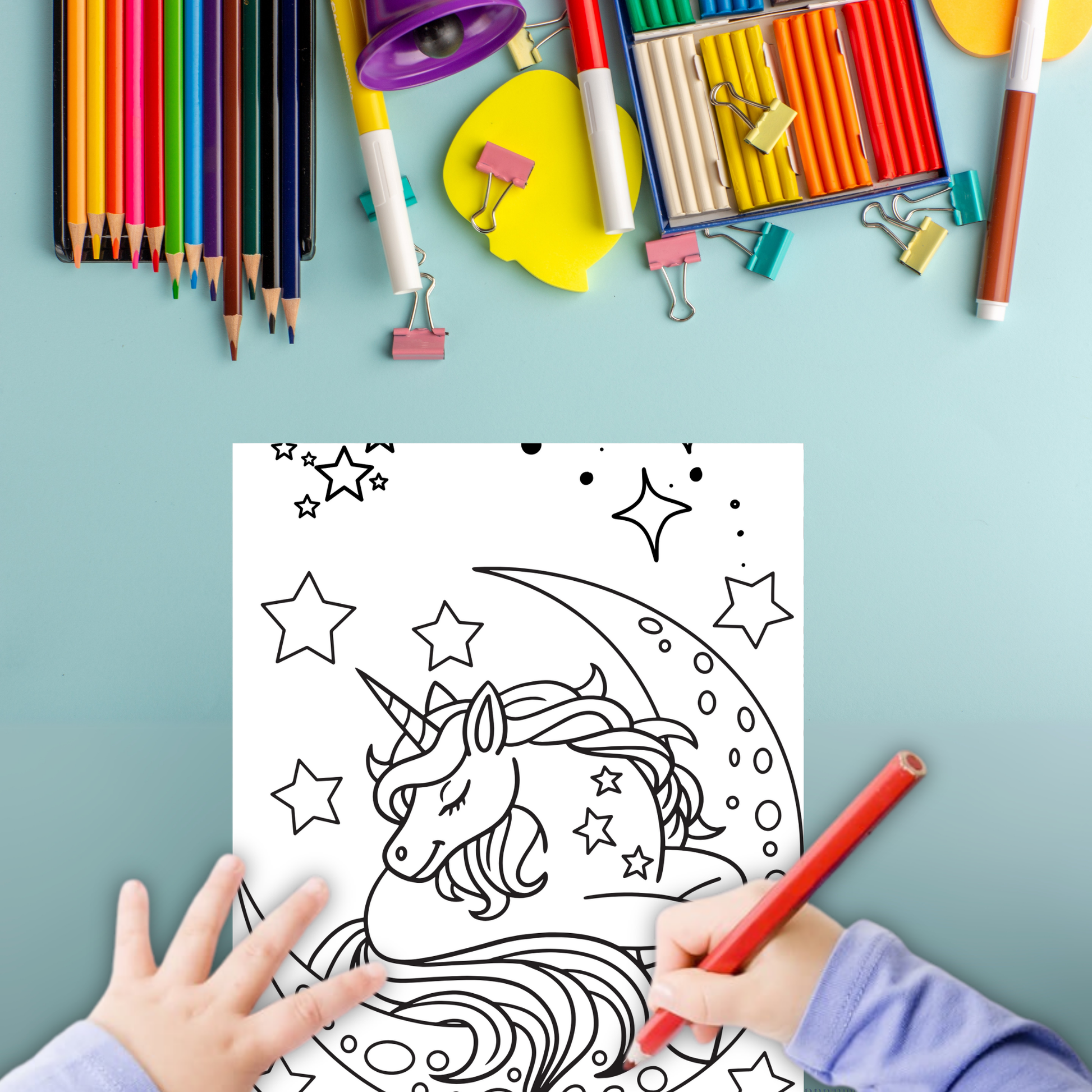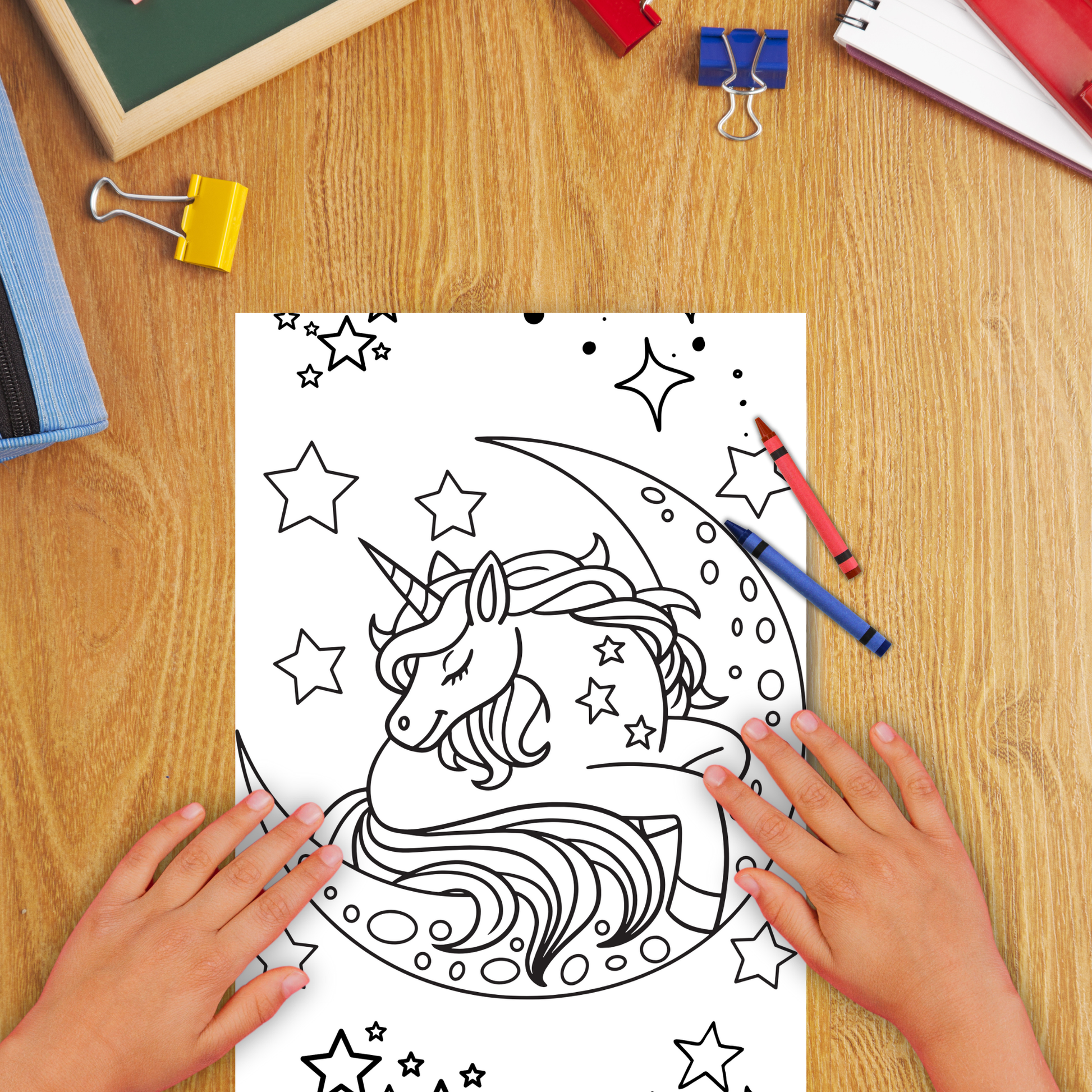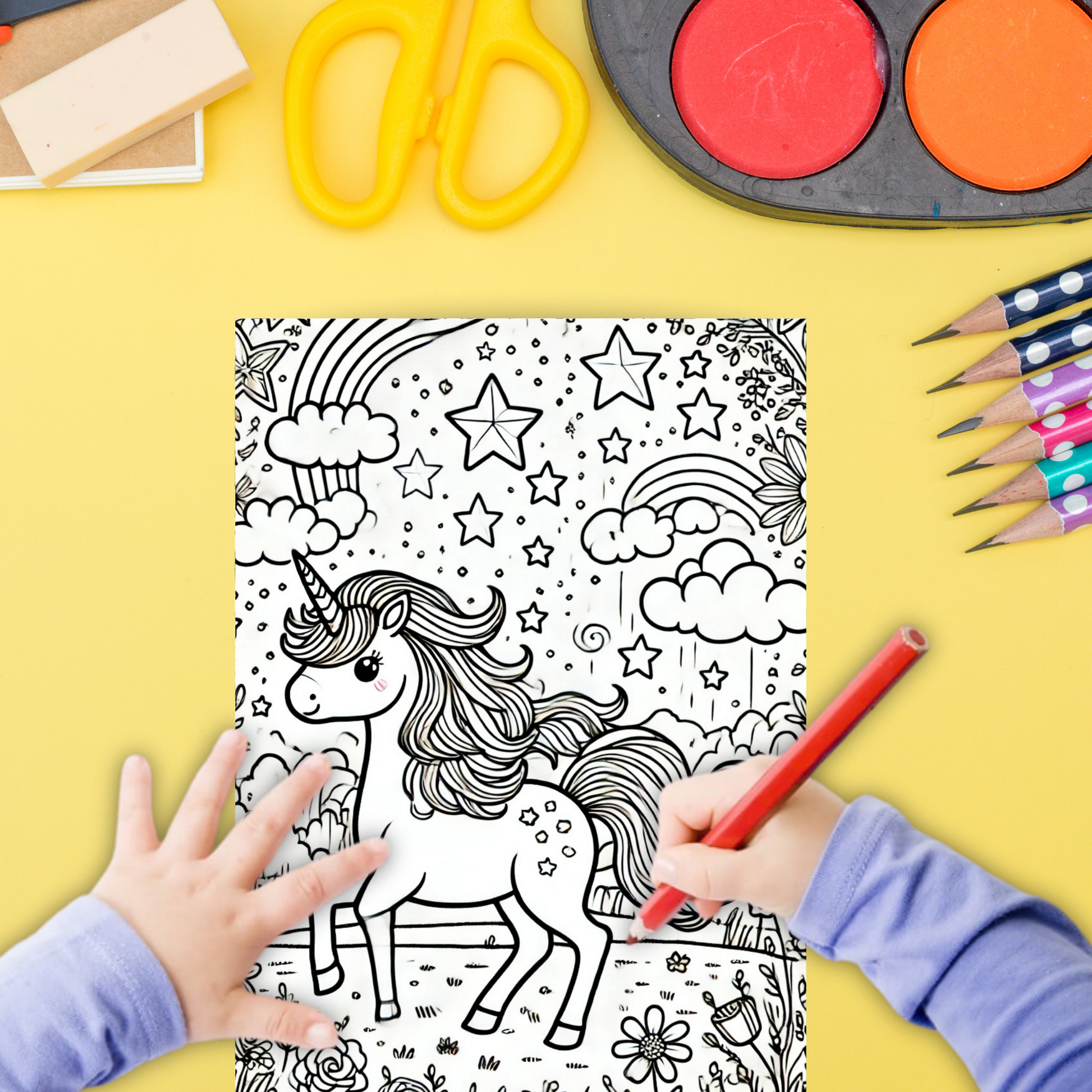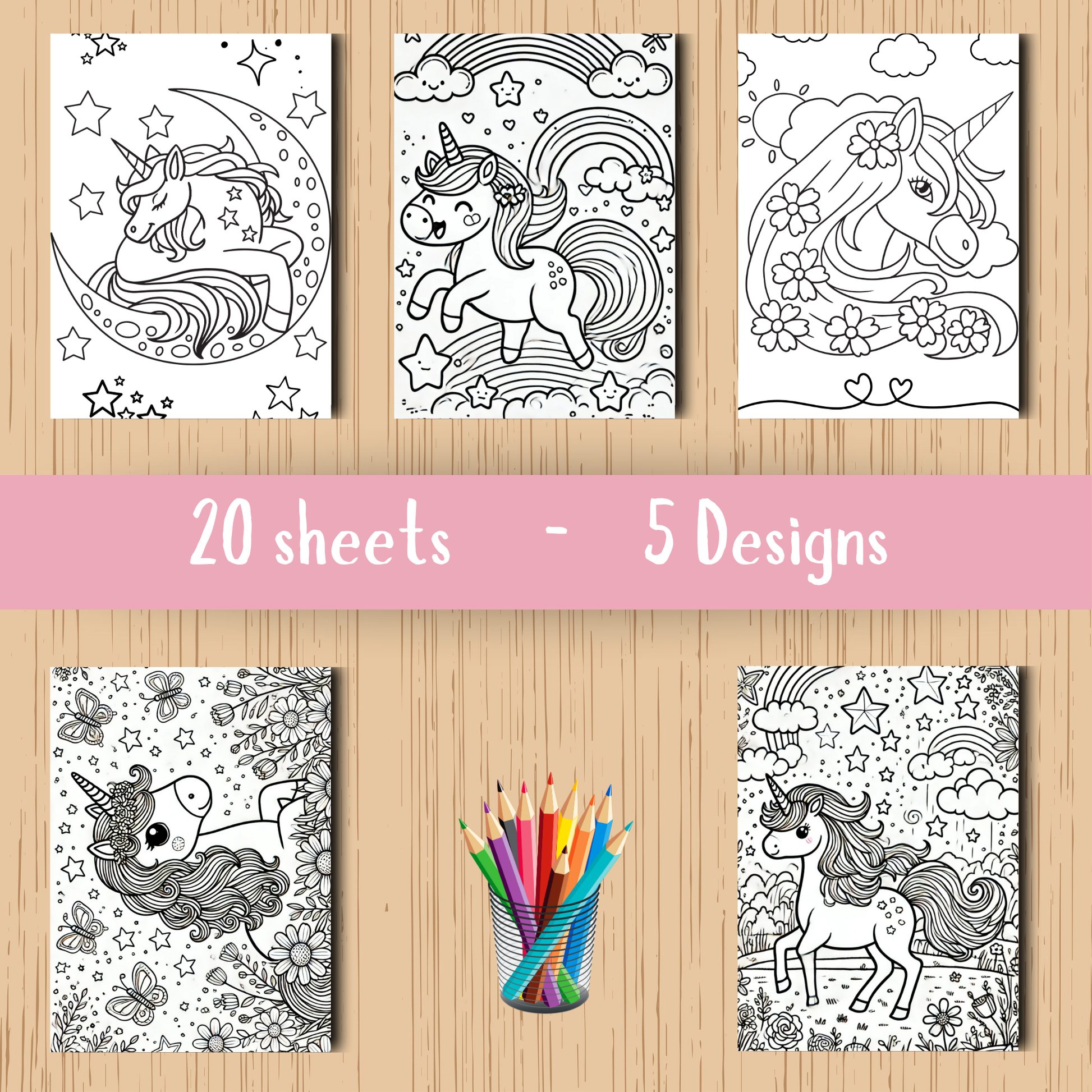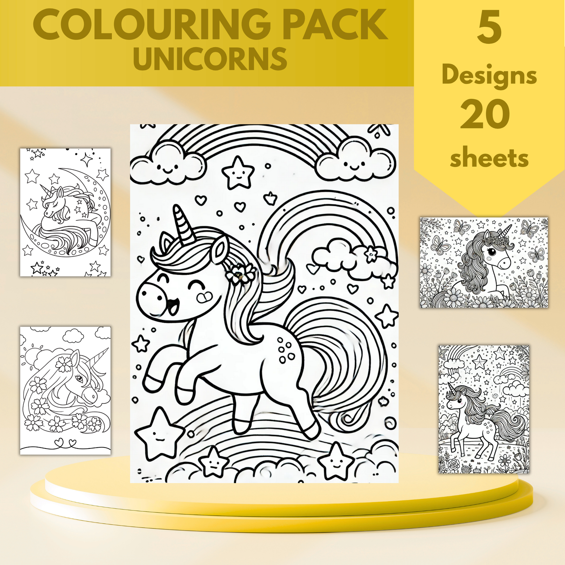 Pack Details: 5 unique unicorn-themed designs, with 4 copies of each – 20 high-quality A4 sheets in total
